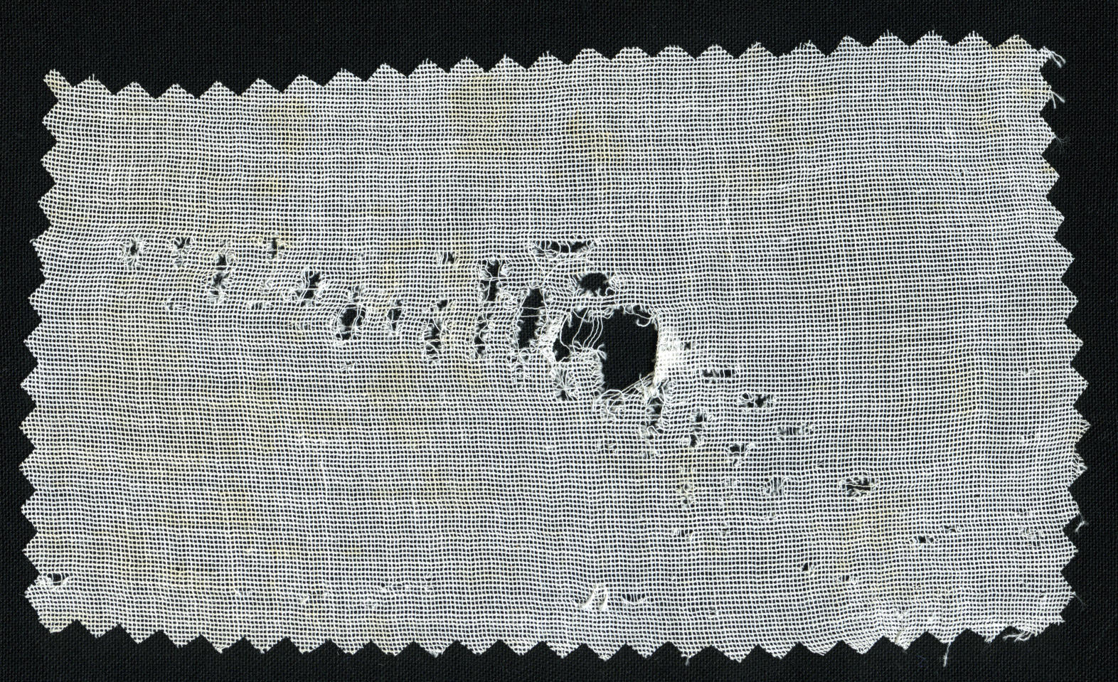 Stuk mutsengaas met een dubbele maas. Deze stof is oorspronkelijk gebruikt in een Volendamse muts.