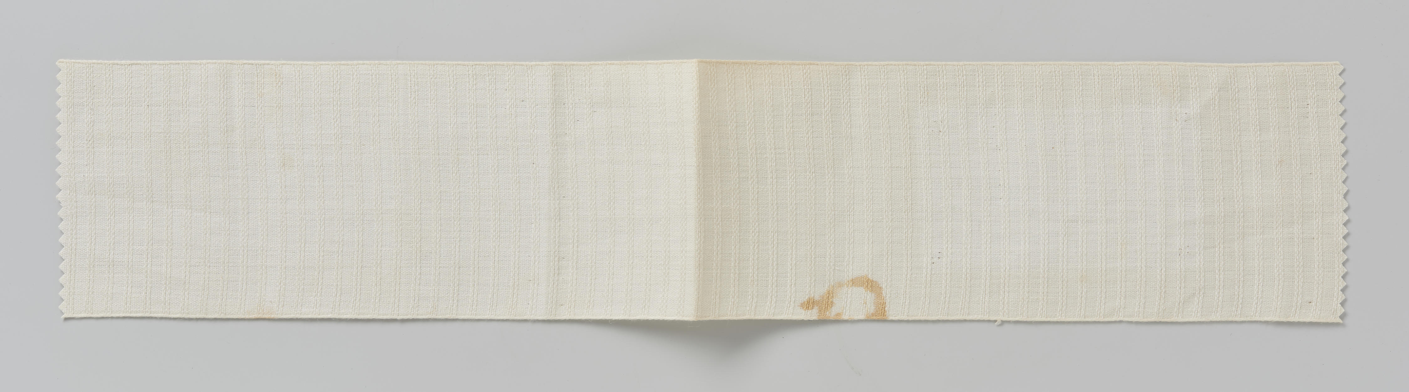 Stuk langet, gebruikt voor een Walcherse vrouwenmuts. Dit stuk is 48 centimeter lang, dus precies voldoende voor één muts. De lengte van het stuk langet voor een muts werd hoofdzakelijk bepaald door de mode en de grootte van het hoofd van de drager.