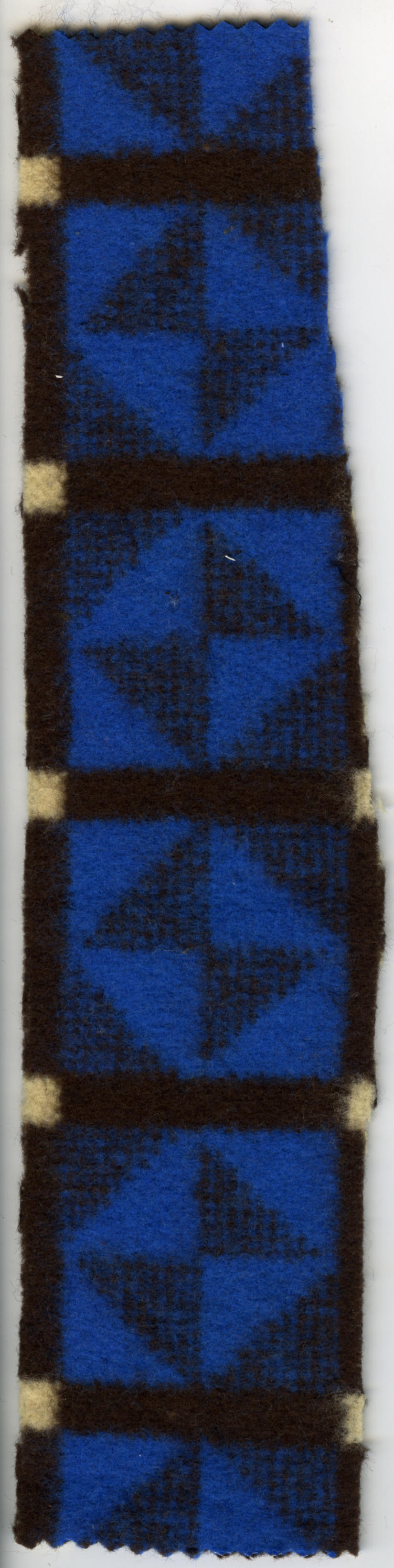 Bedrukte flanellen stof, afkomstig uit de voering van een zogenoemde manteline (zwarte cape met capuchon) die gedragen is door een vrouw in streekdracht uit Cadzand.
