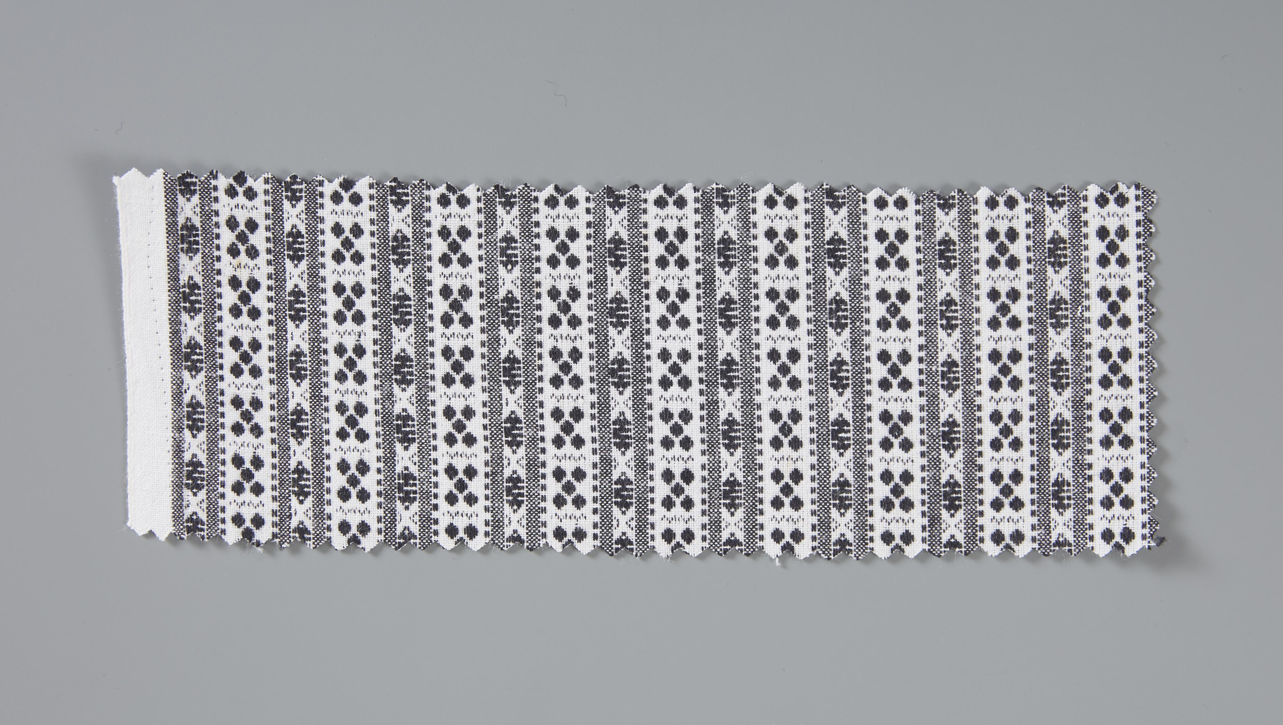 Machinaal geweven katoenen stof, gebruikt voor doordeweekse schorten door vrouwen en meisjes in Zuid-Bevelandse streekdracht.