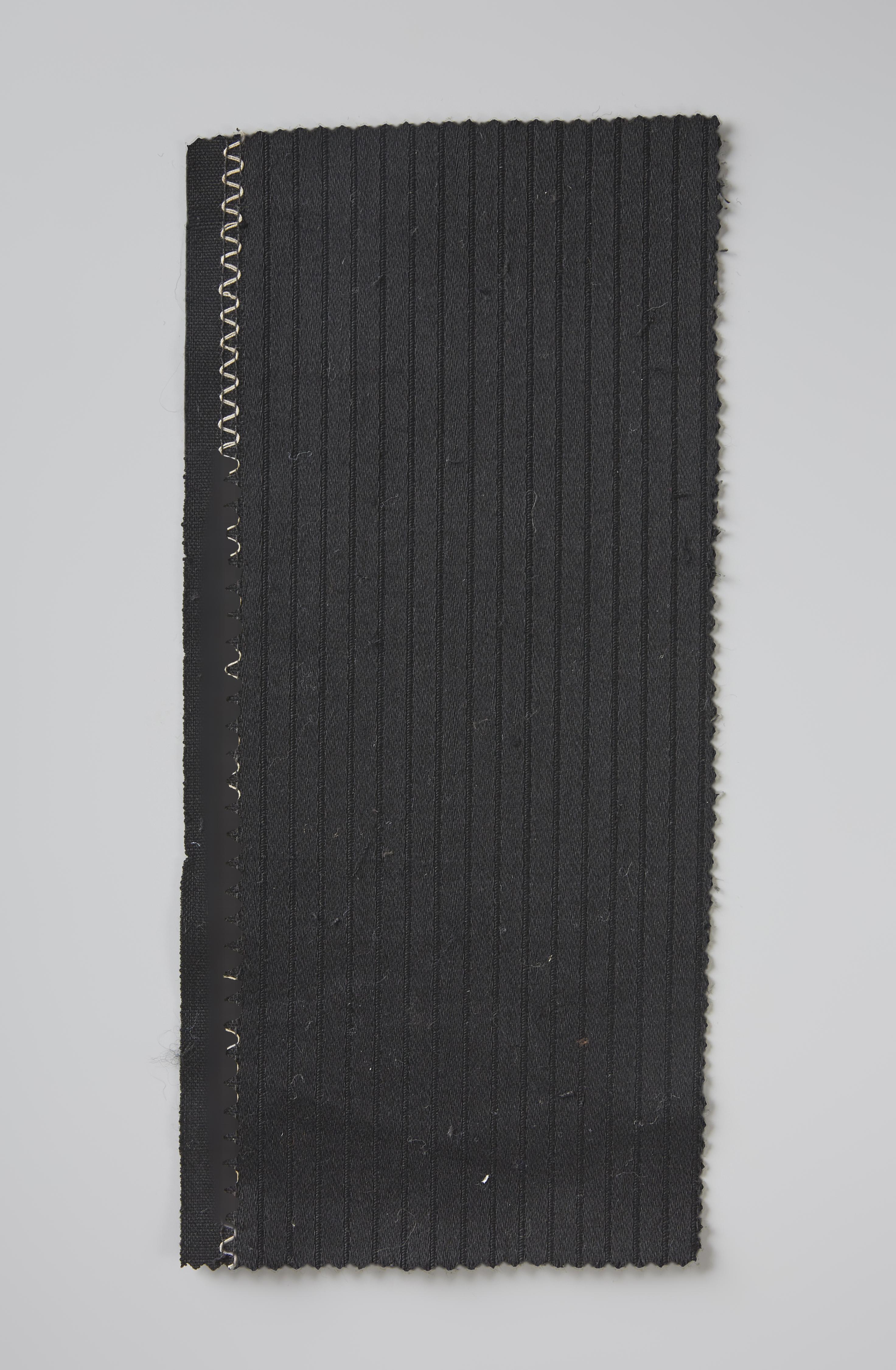 Machinaal geweven zwarte katoenen stof met ingeweven glanzende zwarte strepen, in de Zuid-Bevelandse streekdracht onder meer gebruikt voor bovenrokken door vrouwen en meisjes.