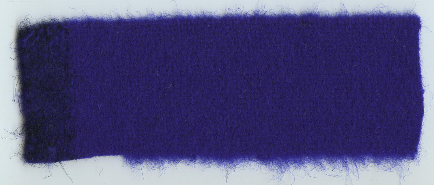 Gevolde blauwe wollen baai, gebruikt als voeringstof voor jongens- en mannenjassen in Volendam. In de zelfkant zijn zwarte kettingdraden gebruikt.