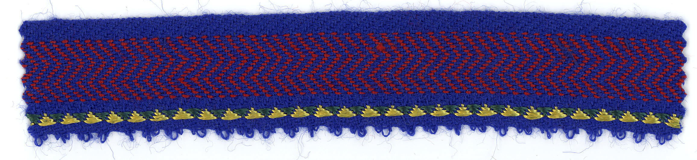 Wollen band, zogenoemd 'koor', op Marken gebruikt voor het afwerken van diverse kledingstukken. Dit donkere koor werd gebruikt in de rouw, wanneer men een dunne kap droeg.