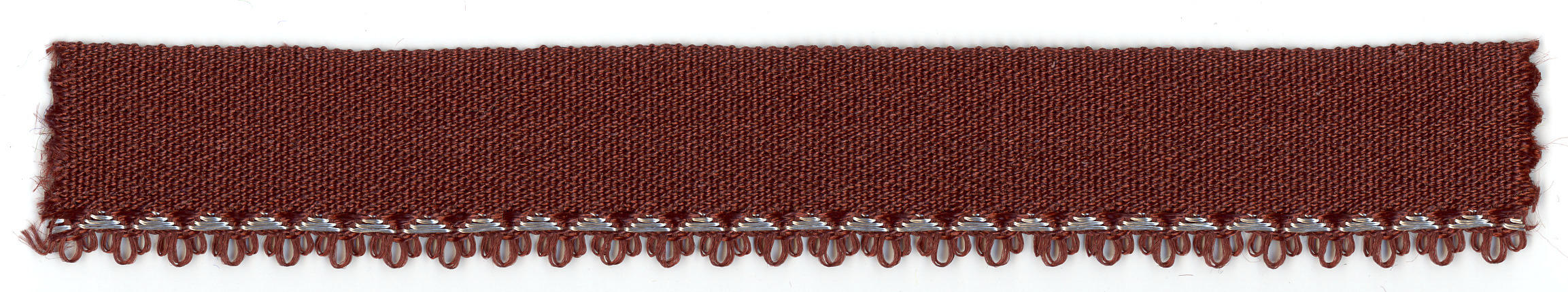 Band van donkerrood kunstvezel, zogenoemd 'koor', op Marken gebruikt voor het afwerken van diverse kledingstukken. Dit koor werd gebruikt uit de rouw en bij de paarse mouwen.