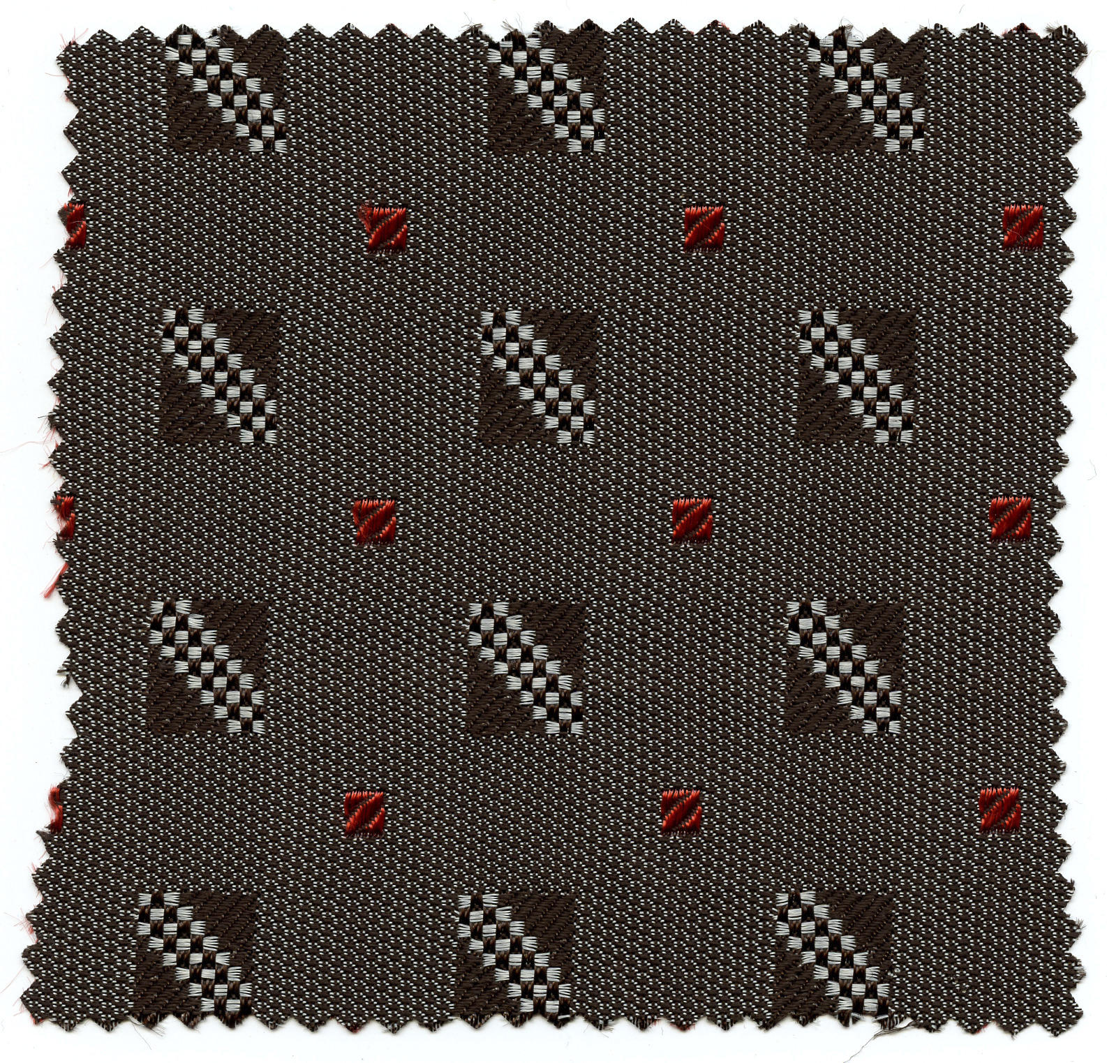 Jaquardweefsel van kunstvezel. De stof heeft een bruin-wit fond met bruin-witte en rode motieven en wordt wel 'vestjesgoed' genoemd. Hij is dikwijls gebruikt voor een beuk (kroplap) in combinatie met een zogenoemde 'broekedoek' (schouderdoek).