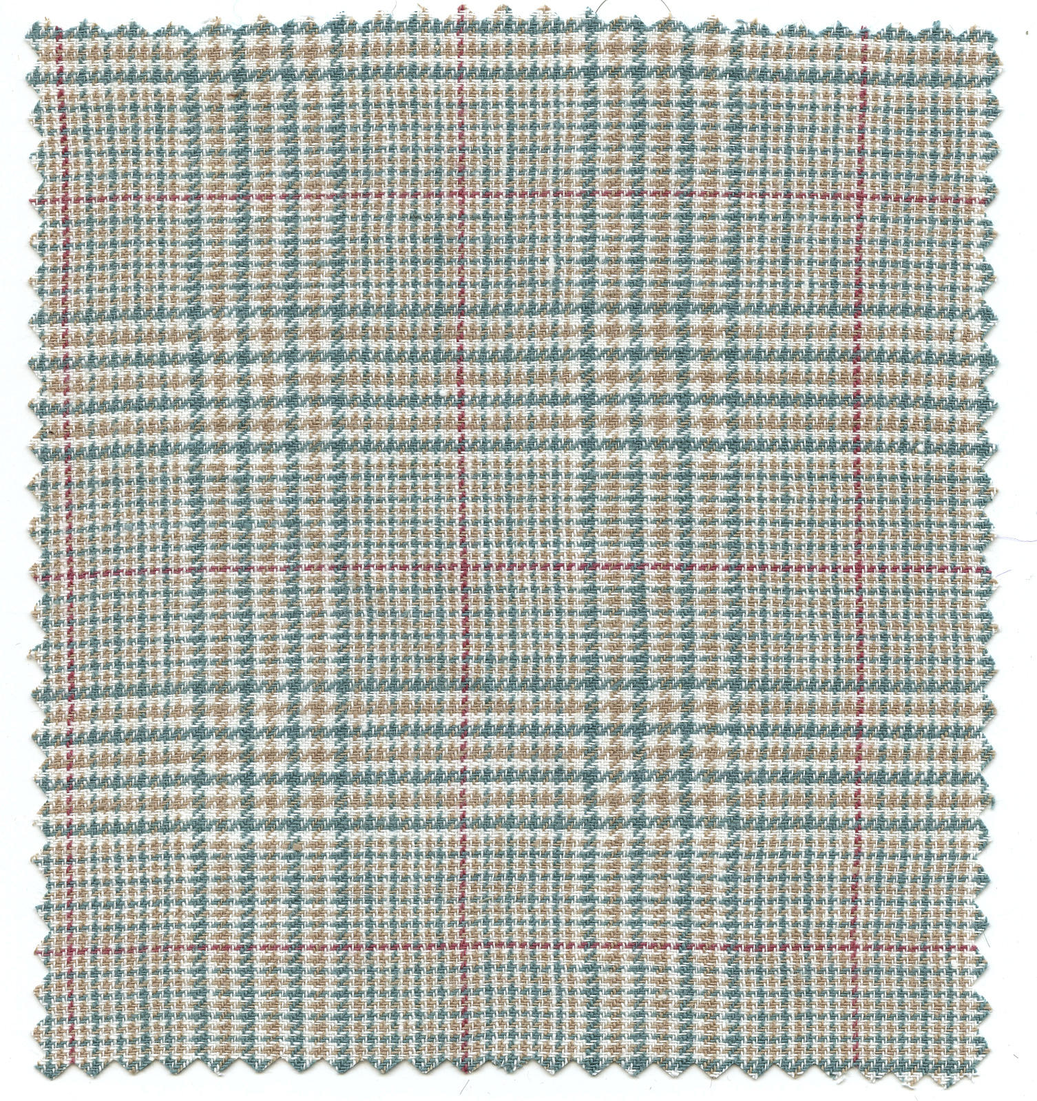 Machinaal geweven katoenen stof, bruin-lichtgroen-wit geruit, met ingeweven rode ruiten. De stof is vanaf omstreeks 1940 gebruikt voor 'beuken' (kroplappen) en schouderdoeken door vrouwen en meisjes in Zuid-Bevelandse streekdracht.