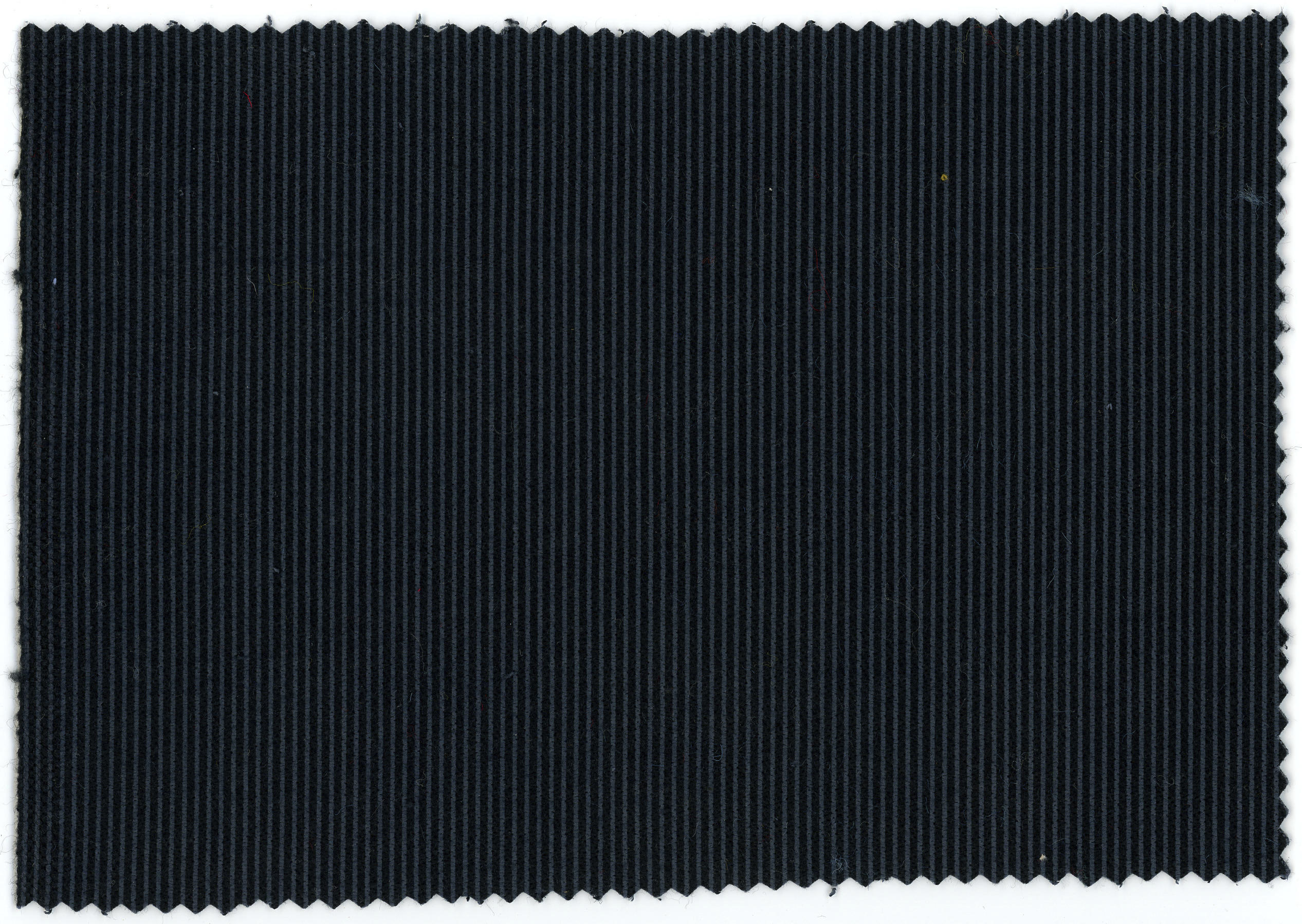 Stevige katoenen stof, bedrukt met verticale zwarte en grijze strepen. De achterzijde is geruwd. De stof werd gebruikt voor werkkleding.