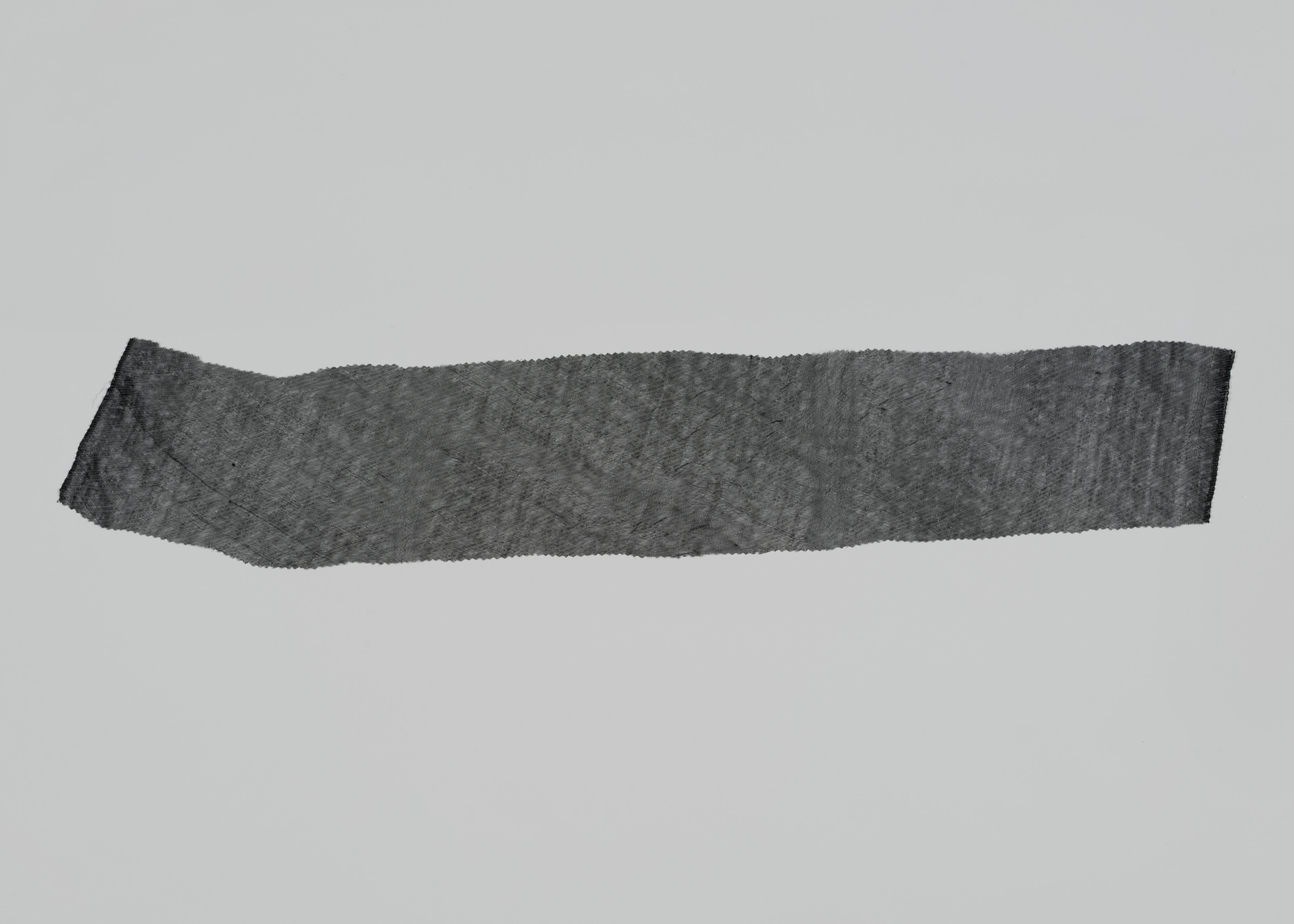 Een stuk zwarte crêpe. Crêpe werd gebruikt voor kledingstukken en voor afwerking van kledingstukken bij zware rouw. De stof werd zowel bij modekleding als bij streekdracht gebruikt. De weefbreedte is circa 79 centimeter.