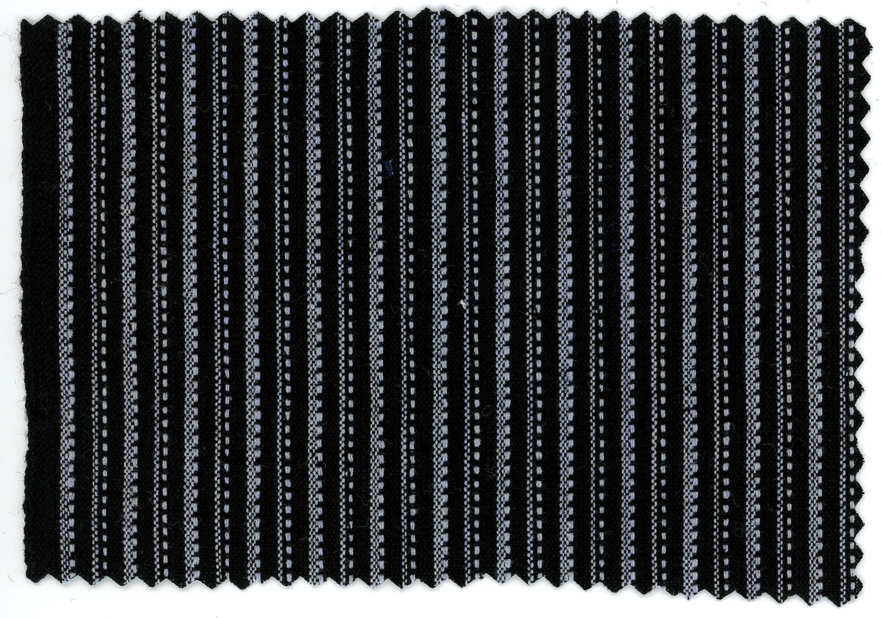 Schortenstof, gebruikt door vrouwen en meisjes in Zuid-Bevelandse streekdracht. De stof is een zwarte katoen met ingeweven grijze strepen. Hij is gebruikt voor rouwschorten bij de doordeweekse dracht.