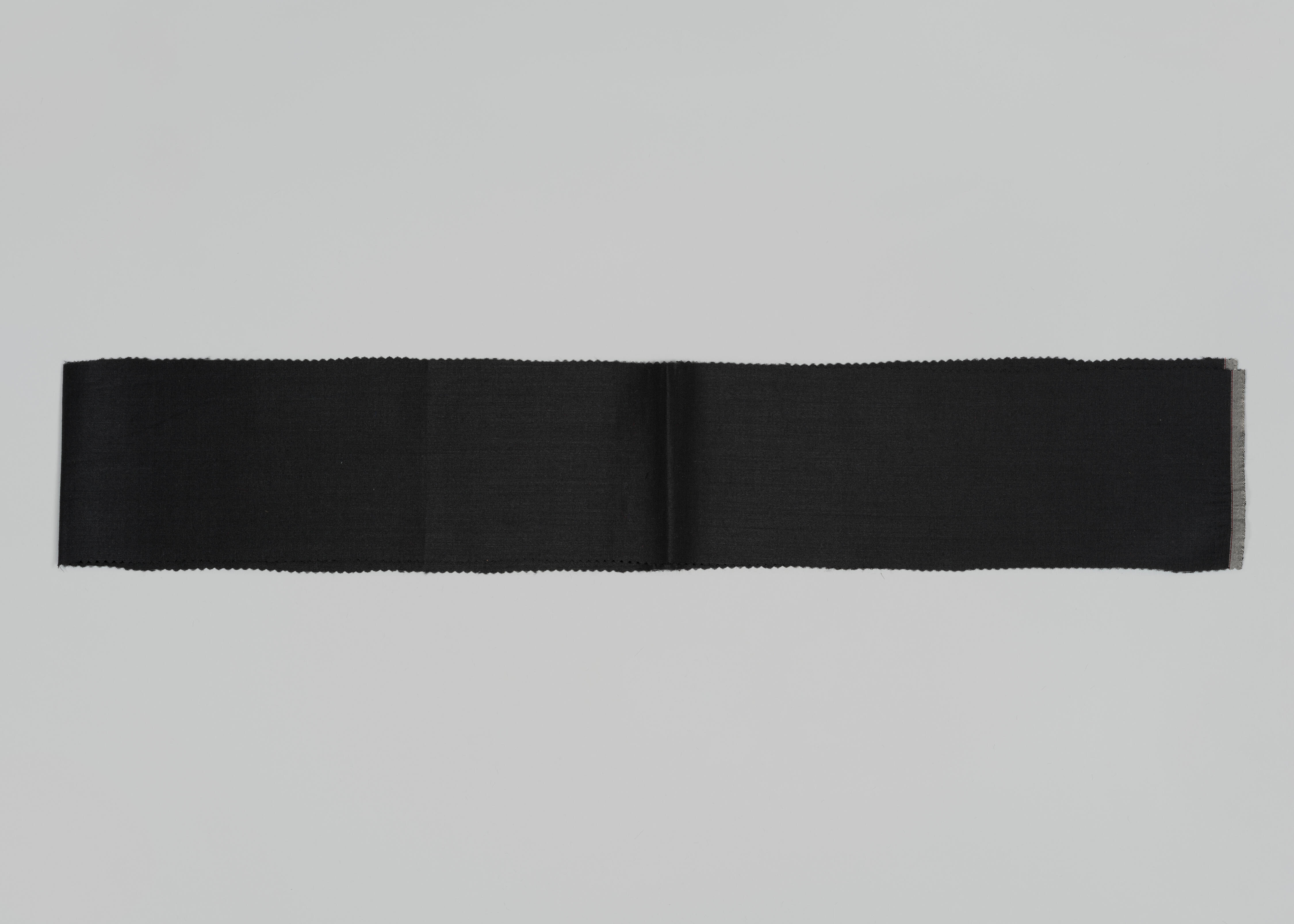 Fijne zwarte wollen stof, zogenoemd luster. In Bunschoten en Spakenburg werd deze stof gebruikt voor schorten van een bruid. De stof is geweven in platbinding. De weefbreedte is 141 centimeter. De beide zelfkanten zijn grijs met een rood draadje. Toen de stof werd aangeschaft kostte deze 25 gulden per meter.