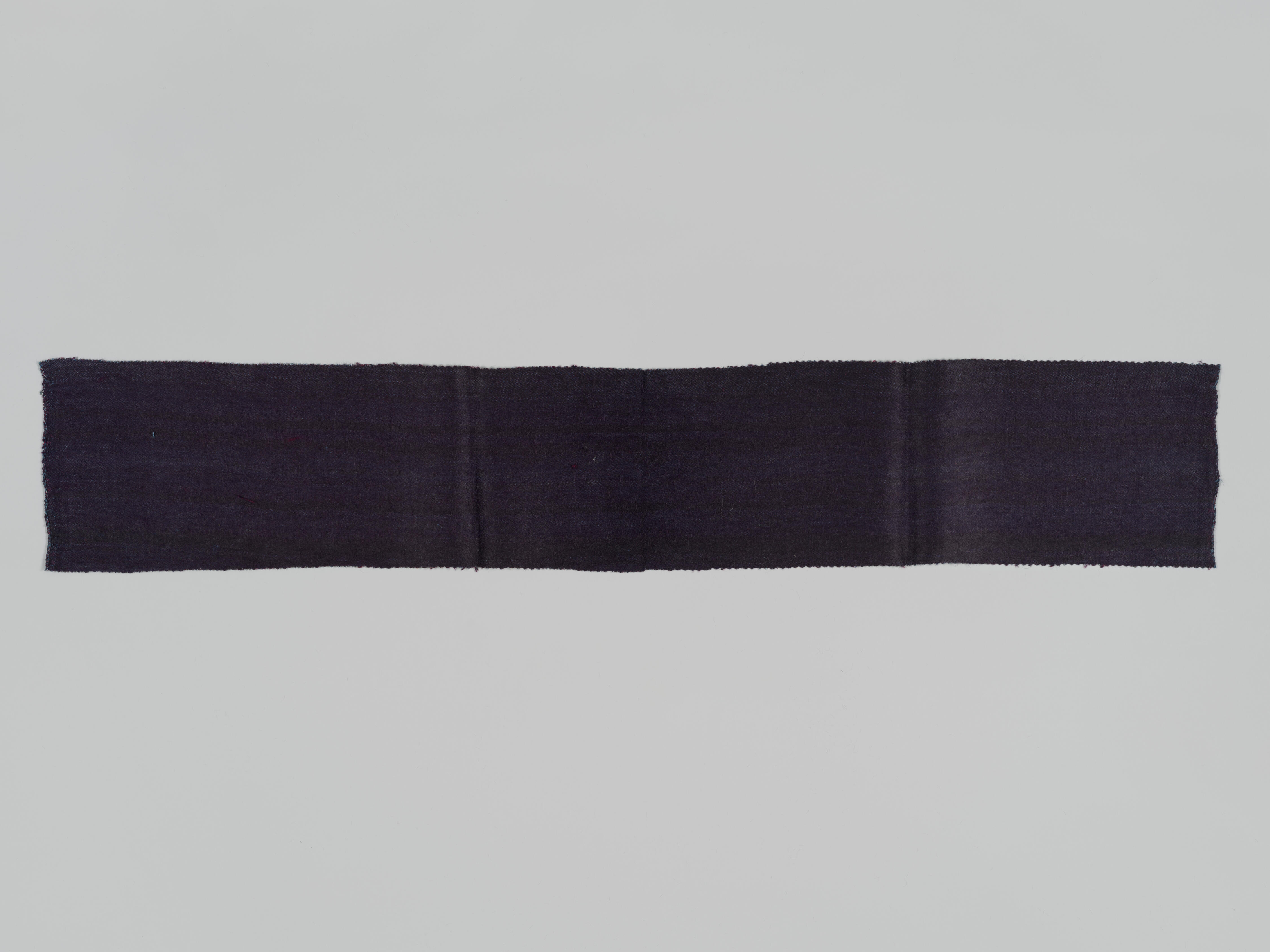 Een strook lichtglanzende paarse stof, zogenoemd vijfschaft, gebruikt voor jakken en rokken door vrouwen in Drentse streekdracht. Het vijfschaft heeft linnen kettingdraden en inslagdraden van handgesponnen wol. De stof is met de hand geweven in een satijnbinding. Het oppervlak is eerst geruwd en vervolgens gekalanderd. De weefbreedte is 85,5 centimeter. De stof heeft in het ...