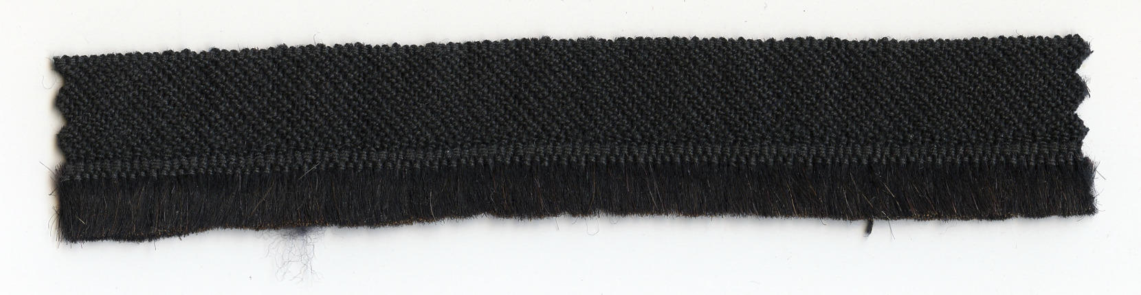Zwart wollen band met langs één zijde een stijve korte franje, zogenoemd bezemband, gebruikt als stootrand onderlangs rokken en japonnen. Het bezemband wordt zodanig langs de binnenzijde van de rand genaaid dat de franje net onder de zoom uitsteekt.
