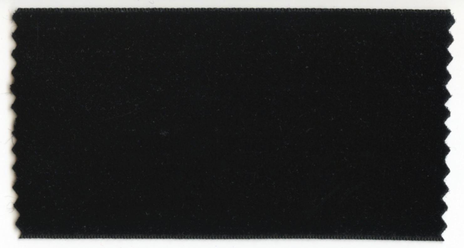 Stuk zwart fluweelband, gebruikt als mouwversiering aan het Walchers vrouwenjak dat van merinos is gemaakt (het 'doffe jak'). Het fluweelband komt voor in verschillende breedtes. Dit stuk heeft een breedte van 6,4 centimeter.