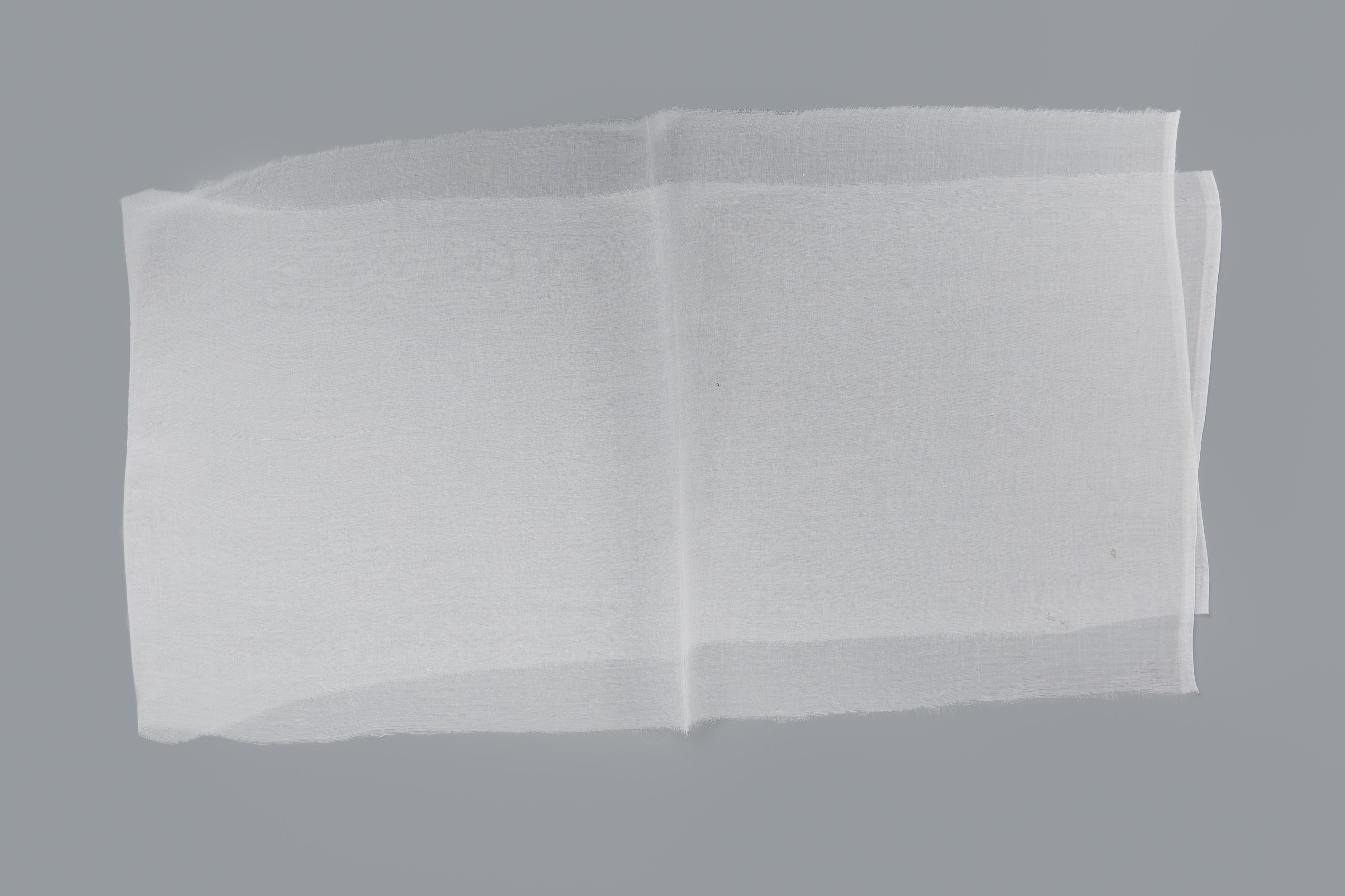 Witte batist, gebruikt voor rouwmutsen in Huizen. De strook heeft een weefbreedte van 110 centimeter.