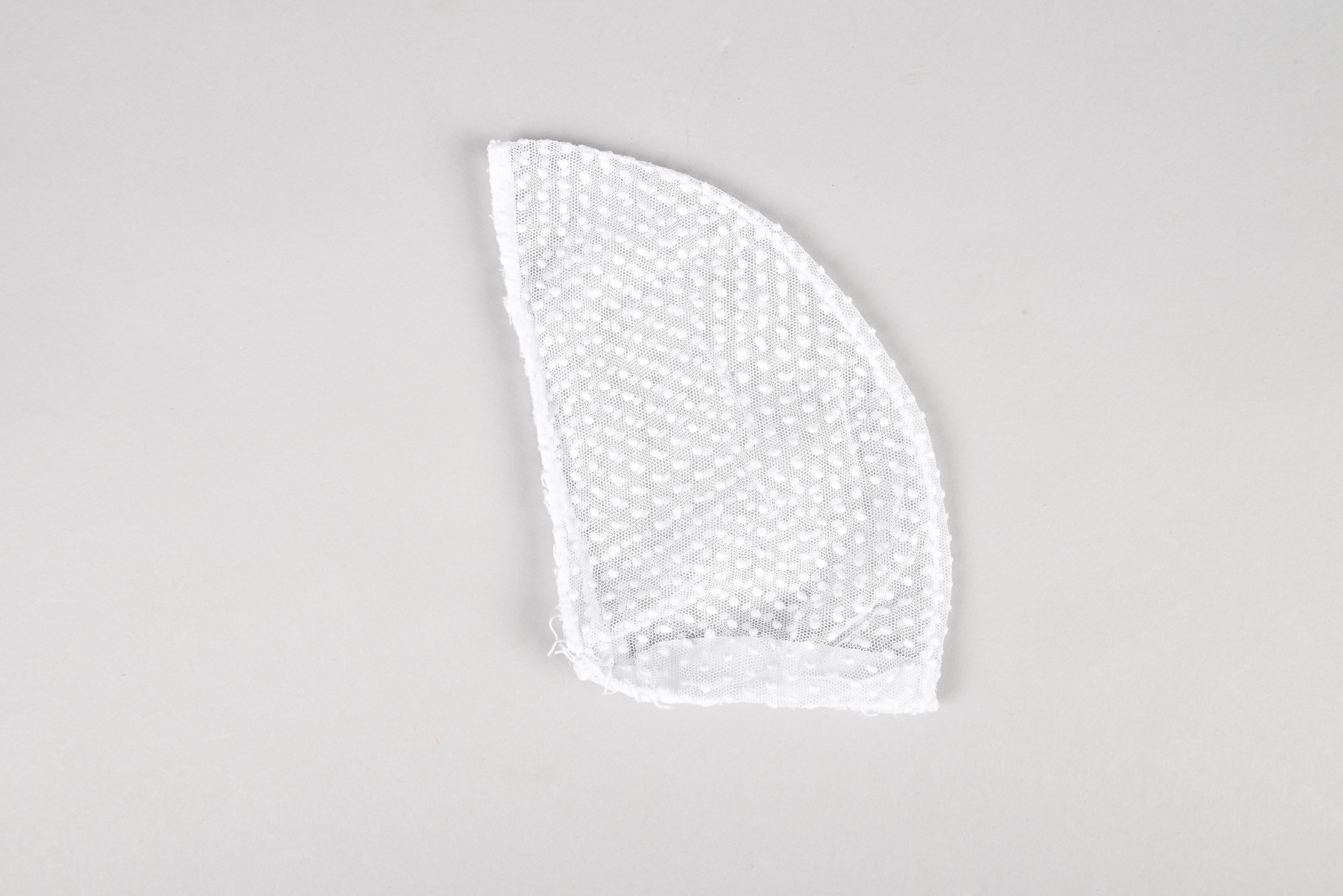 Bol van een oorijzermuts, gedragen door een vrouw in streekdracht uit Friesland. De bol is gemaakt van machinale stiptule. De bol bestaat uit één patroondeel en heeft een verticale naad die tot bijna bovenaan doorloopt. Aan de onderzijde van de bol is een linnen bandje gezet.