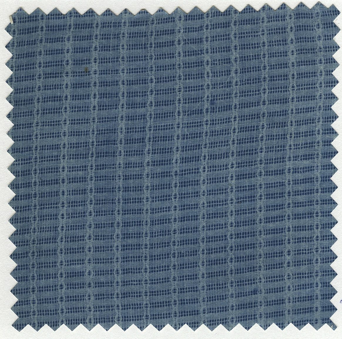 Blauwdruk van stof die gebruikt wordt als alternatief voor de geborduurde stof voor de bol van een 'isabee', gedragen door een vrouw uit Huizen. De isabee was de doordeweekse muts in Huizen. Hij werd zonder oorijzer gedragen door de vrouwen die zondags de 'oorijzermuts' droegen. De blauwdruk is vervaardigd door NOM-medewerkers tijdens veldwerk in 1944 ...