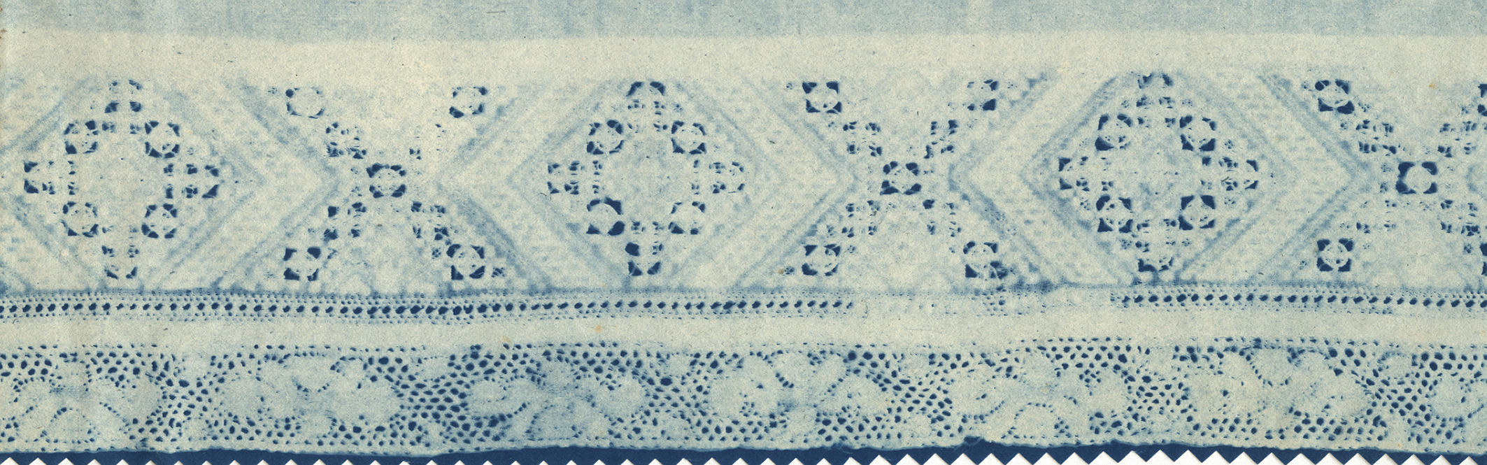 Blauwdruk van een doekje met sneewerk (point coupé) en Hollandse kant, gedragen op het eiland Marken. Deze Vlaamse kant wordt gerekend tot de zogenaamde Hollandse kanten. De kant heeft doorlopende draden en is te dateren vanaf omstreeks 1660. De blauwdruk is vervaardigd door NOM-medewerkers tijdens veldwerk in 1943.