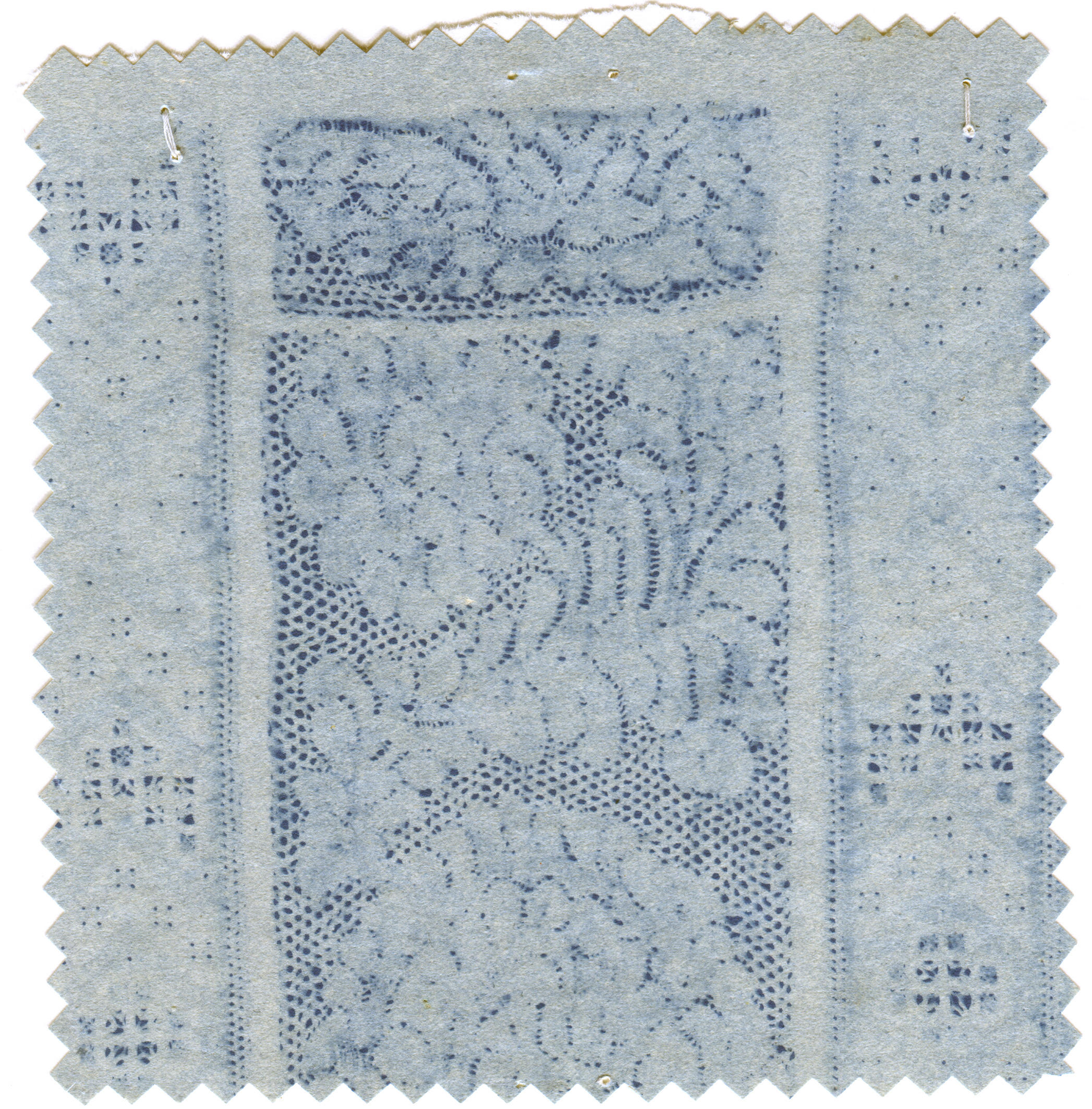 Een blauwdruk met een detail van een opkledersbauwtje met Hollandse kloskant van Marken. Deze Vlaamse kant met doorlopende draden wordt gerekend tot de zogenaamde Hollandse kanten. Binnen de groep van Hollandse kanten wordt dit type ook wel bloemkoolkant genoemd. De kant is te dateren vanaf omstreeks 1660. Het is een mooi voorbeeld in zijn soort, ...