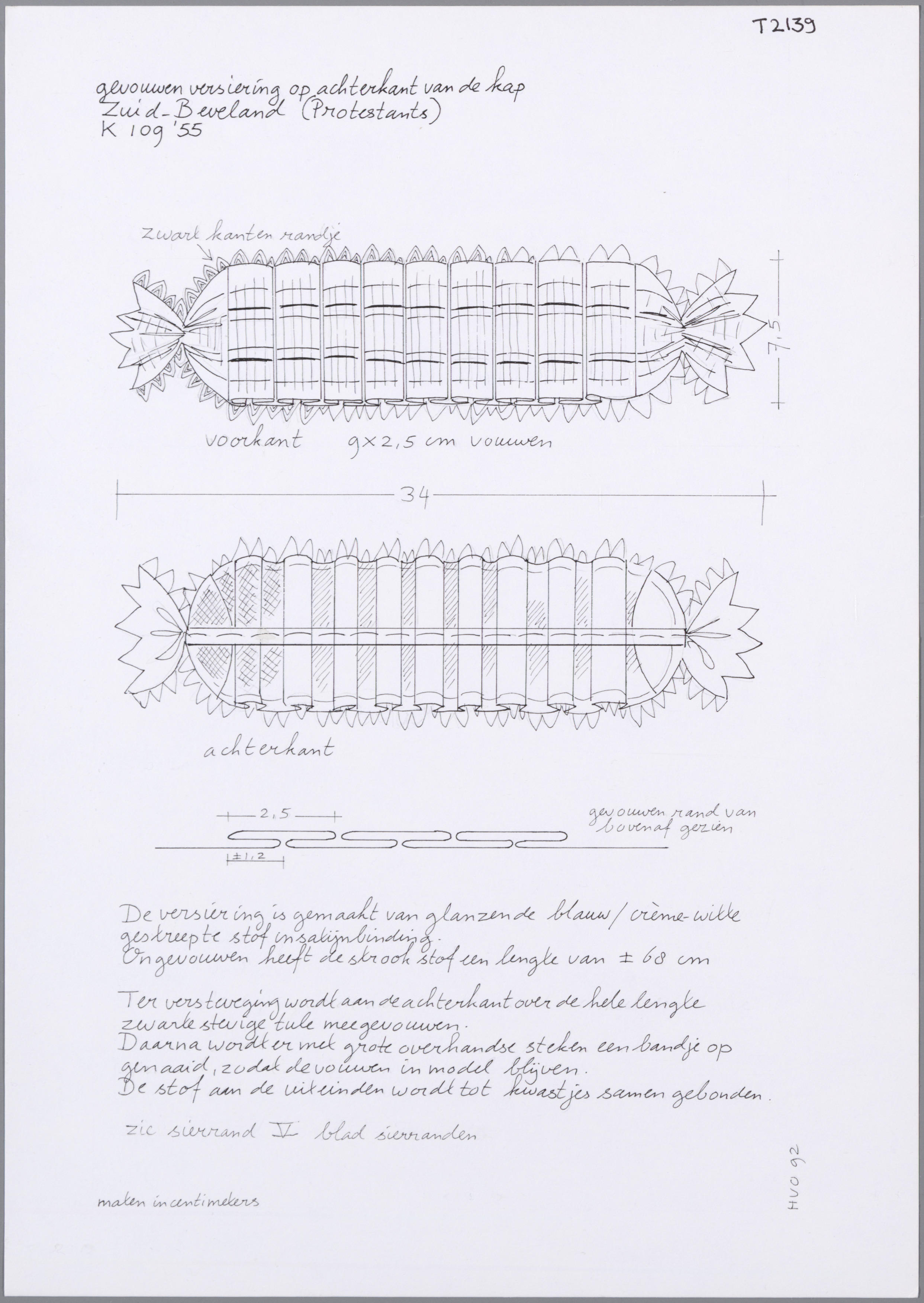 Gevouwen versiering op de achterkant van de kap, Zuid-Beveland (opmetingstekening)