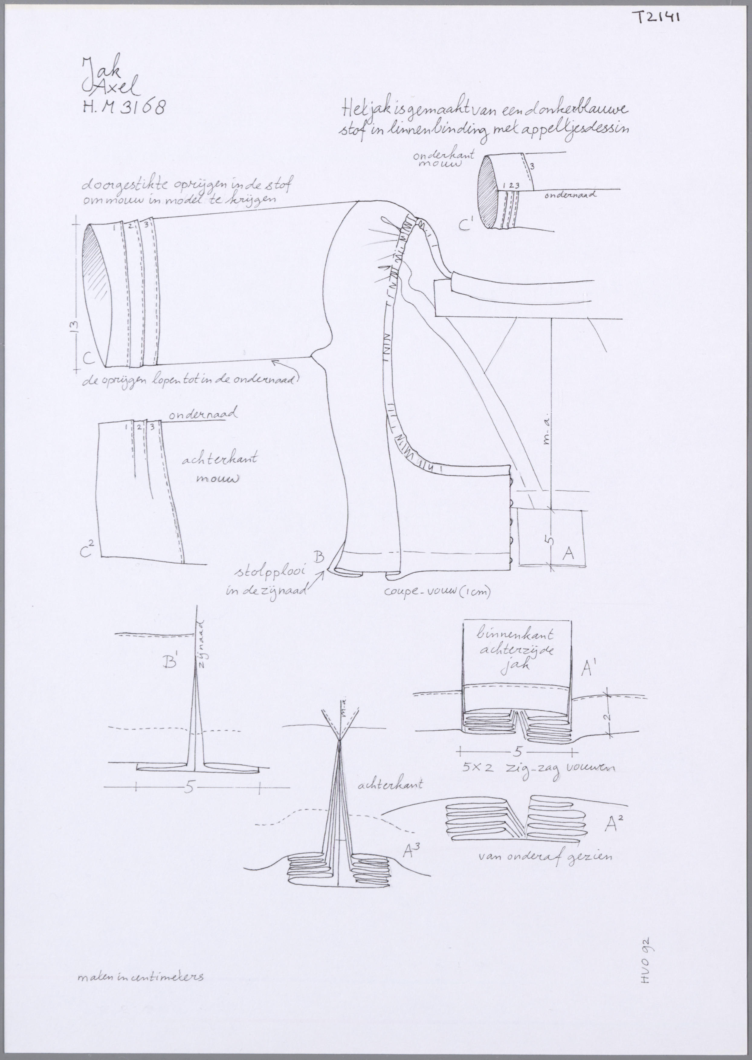 Tekening van een jak, gedragen bij streekdracht uit Axel.