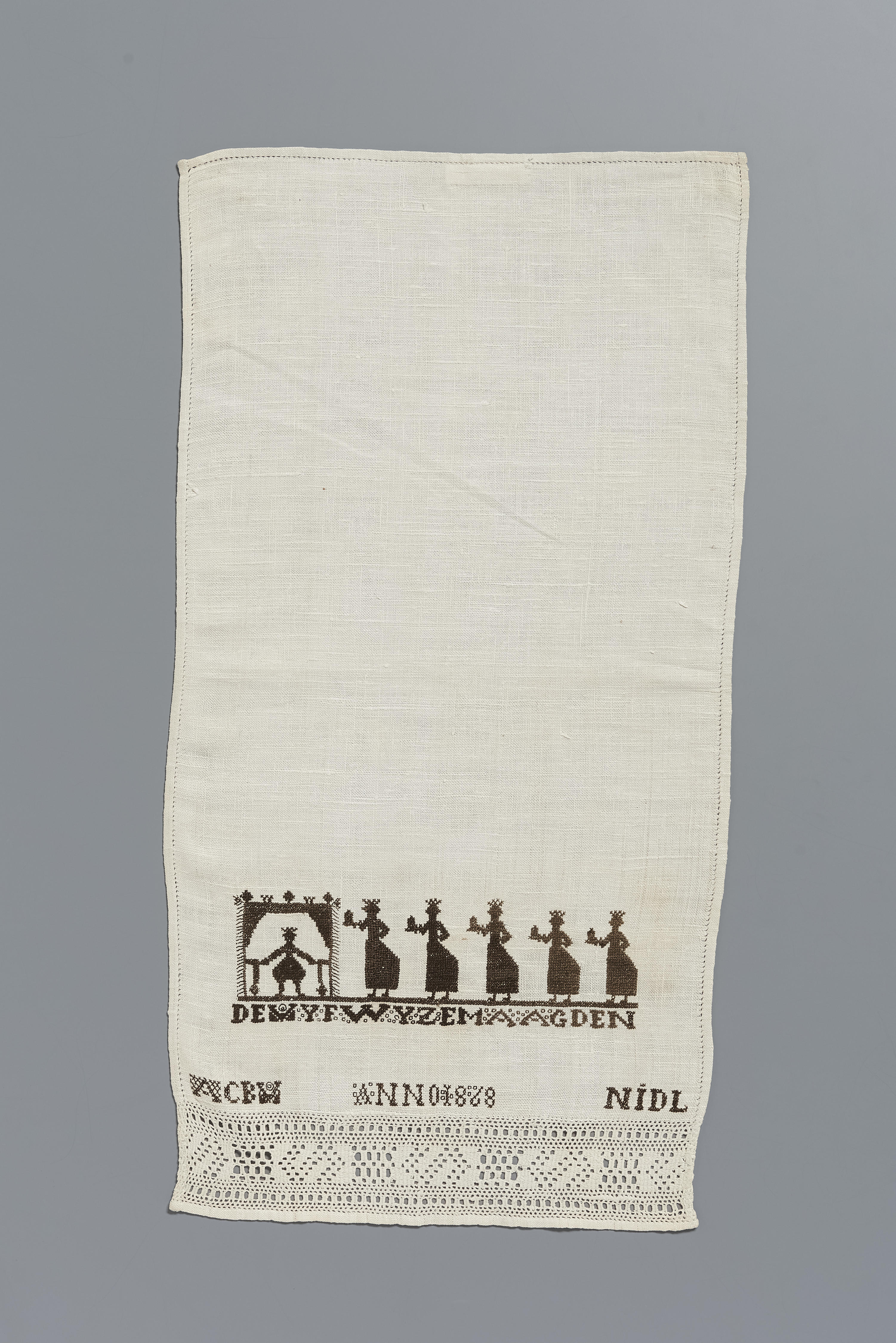 Langwerpig kleedje, een zogenoemd spreitje. Dergelijke spreitjes werden op Marken gebruikt bij het opmaken van het pronkbed, waarbij er een kort spreitje in het midden hing met aan weerszijden een langwerpig spreitje zoals dit.