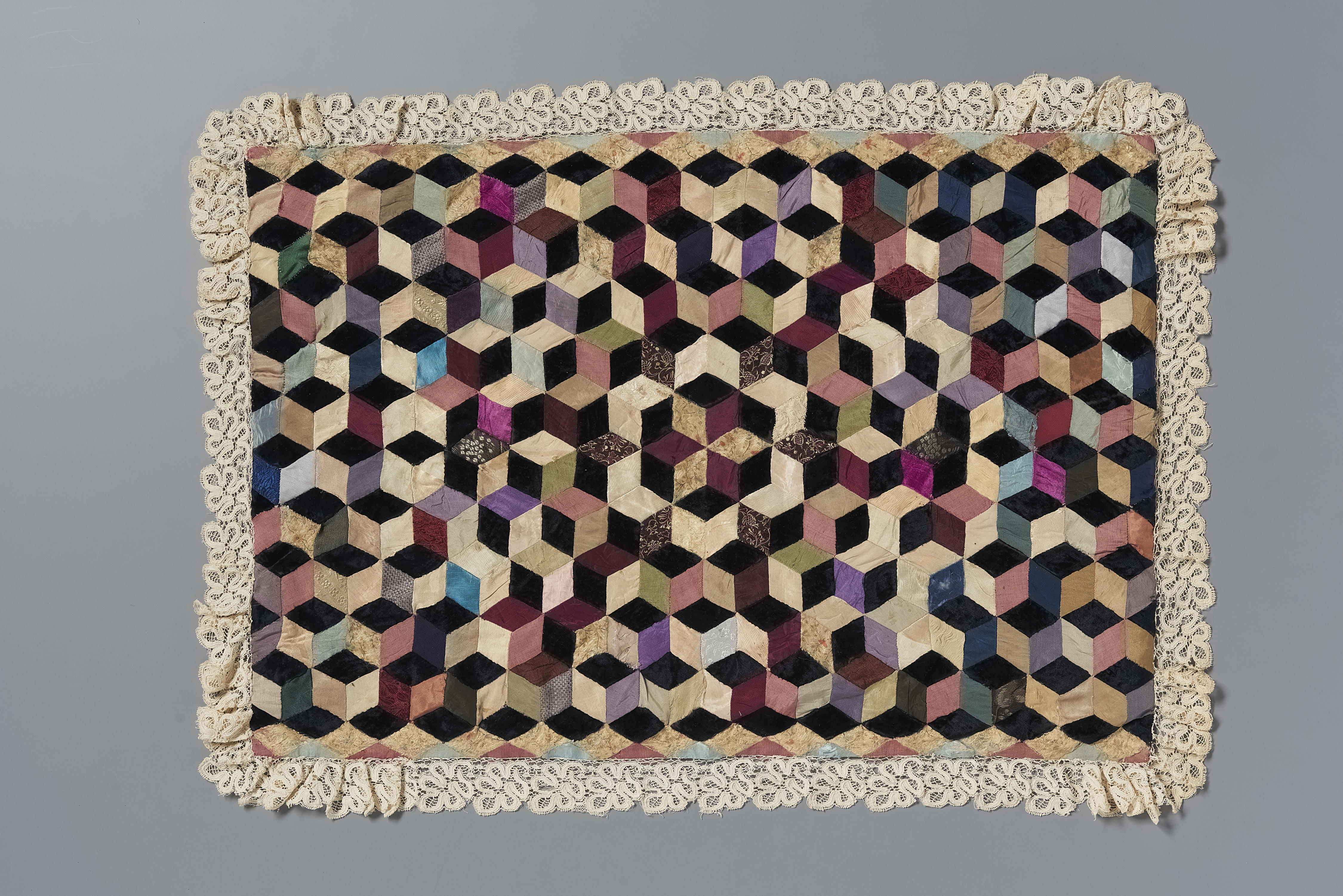 Lappendekentje, gemaakt door Styne Zunderdorp, dochter van de burgemeester van Vlieland. Het was bedoeld voor het kind van haar zuster Maria van Buren-Schele, dat geboren werd op 11 december 1879. Het lappendekentje heeft een symmetrisch patroon, opgebouwd uit ruiten die samen kubusachtige blokjes vormen. In het midden is een stervormig zeshoekig motief genaaid, van waaruit ...