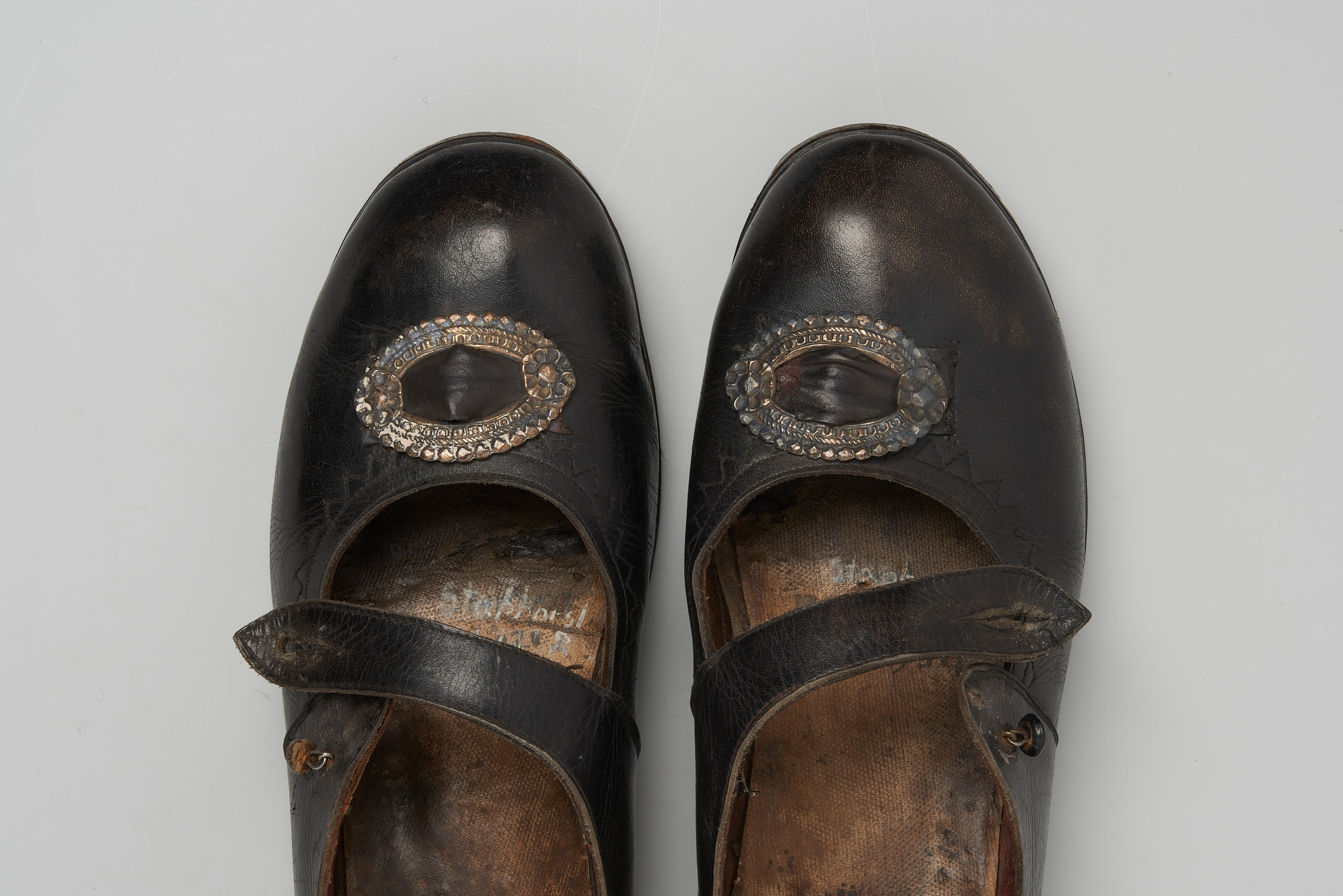 Een paar ovale zilveren schoengespen, gedragen door een meisje of vrouw in streekdracht uit Staphorst of Rouveen. Dergelijke gespen worden in Staphorst en Rouveen 'strikjes' genoemd en sieren de zogenoemde zwart leren 'strikjesschoenen'. De vervaardiger is onbekend, want de gespen dragen geen meesterteken. In het museum zijn de gespen op schoenen met objectnummer K.102-54 gezet.