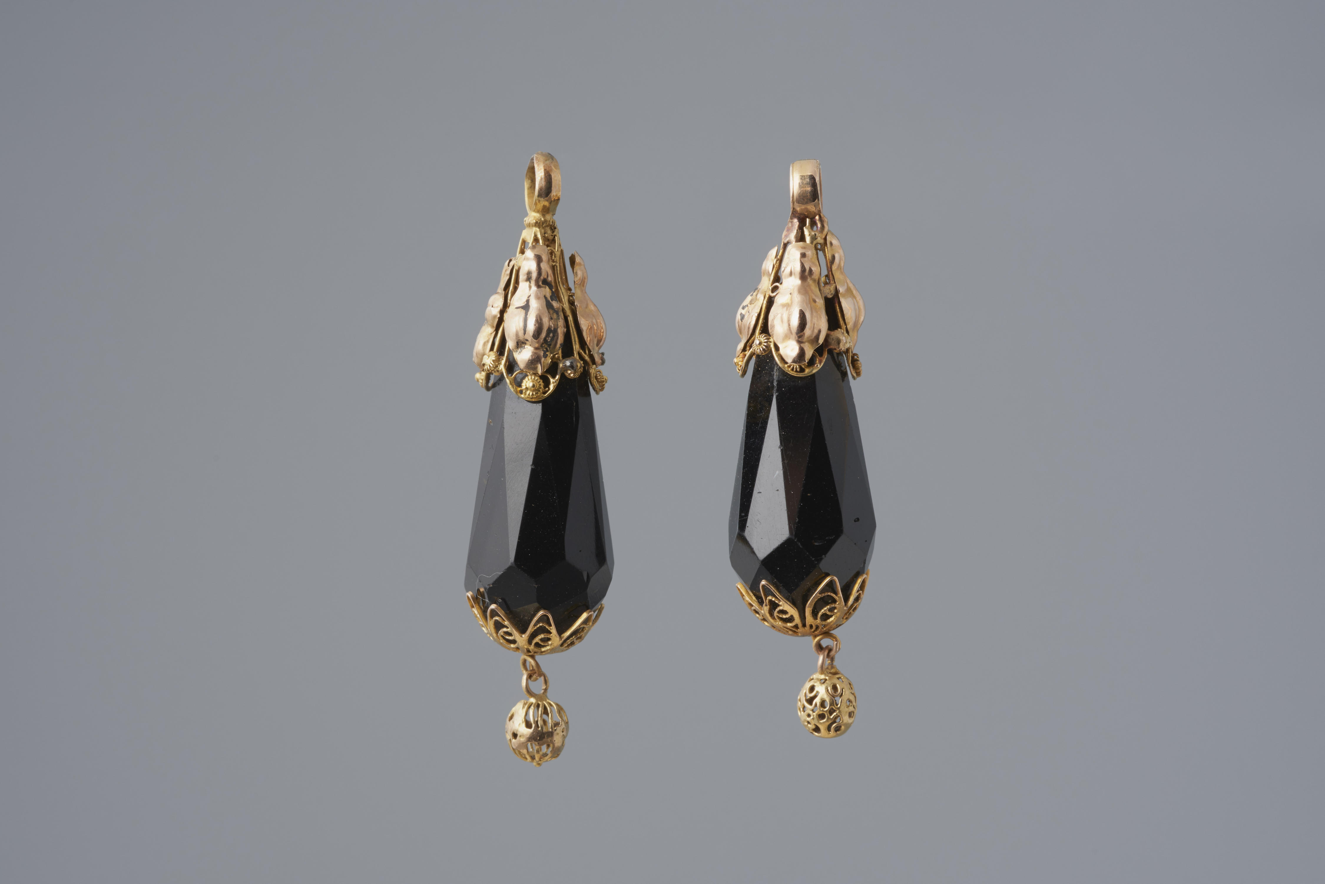 Paar rouwklokken uit omstreeks 1895. Ze werden gedragen bij de rouwdracht door een vrouw in Nieuwland.