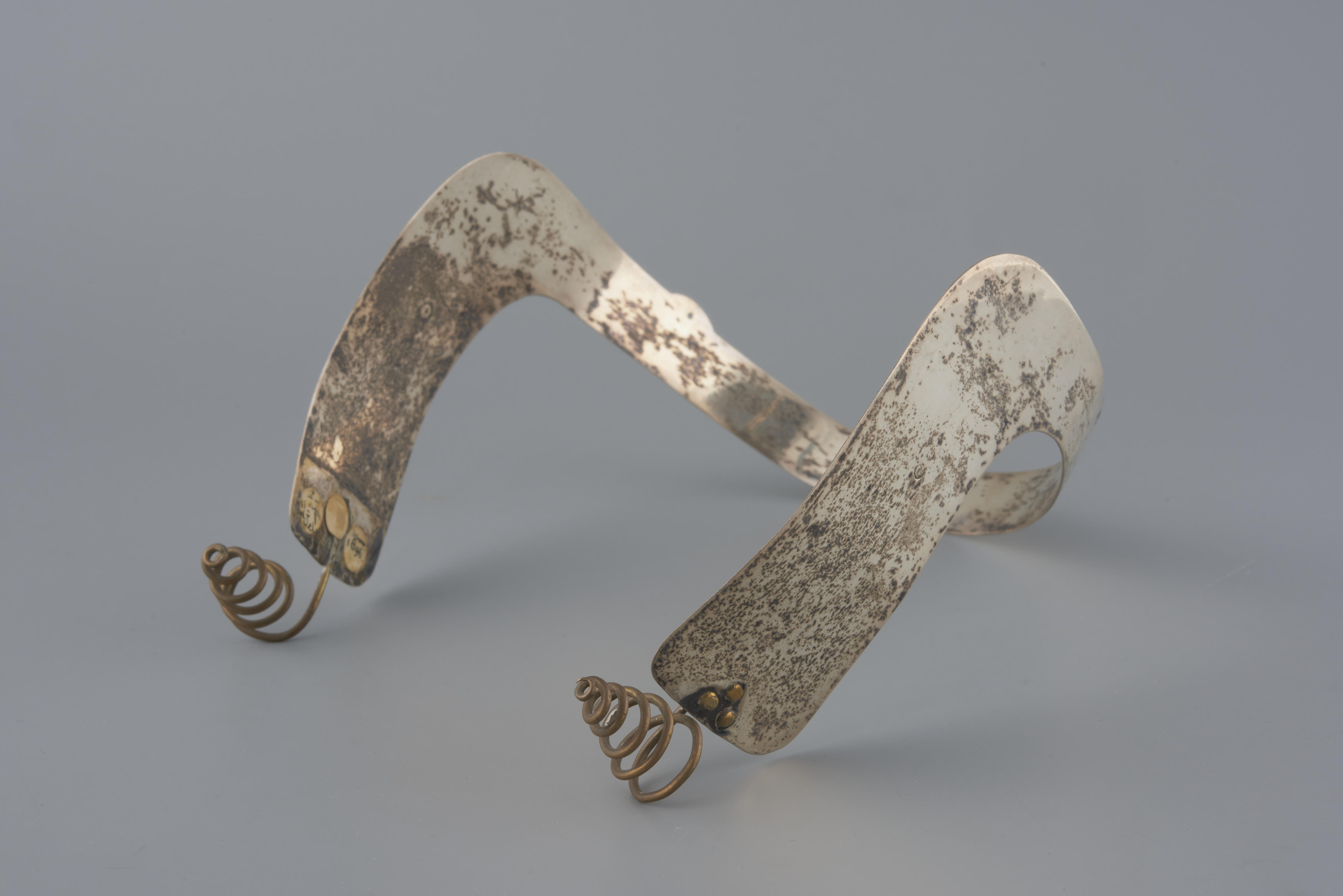 Zilveren oorijzer met messing krullen, Noord-Veluwe, 1899