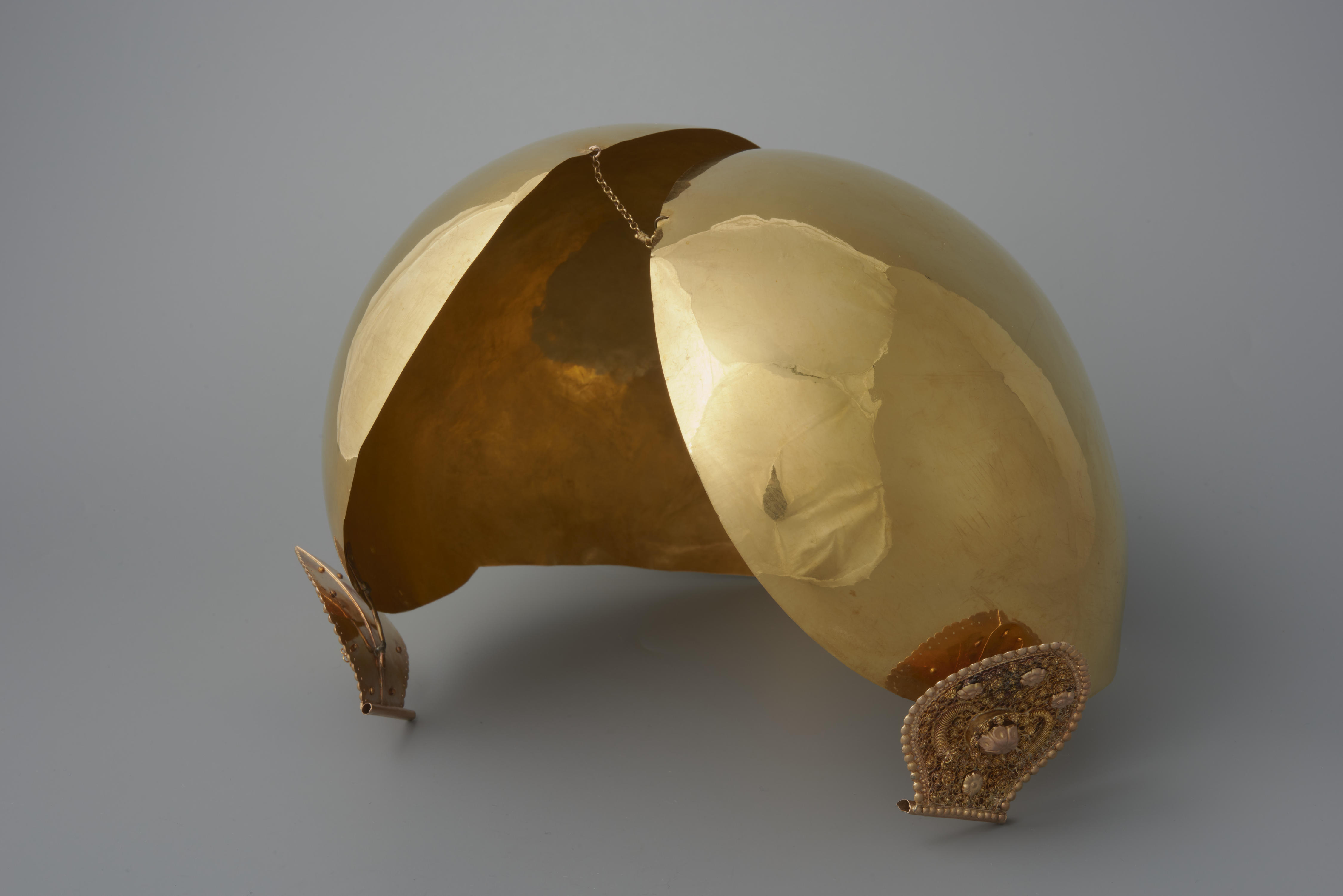 Verguld messing oorijzer met gouden stiften, provincie Groningen, 1860-1900