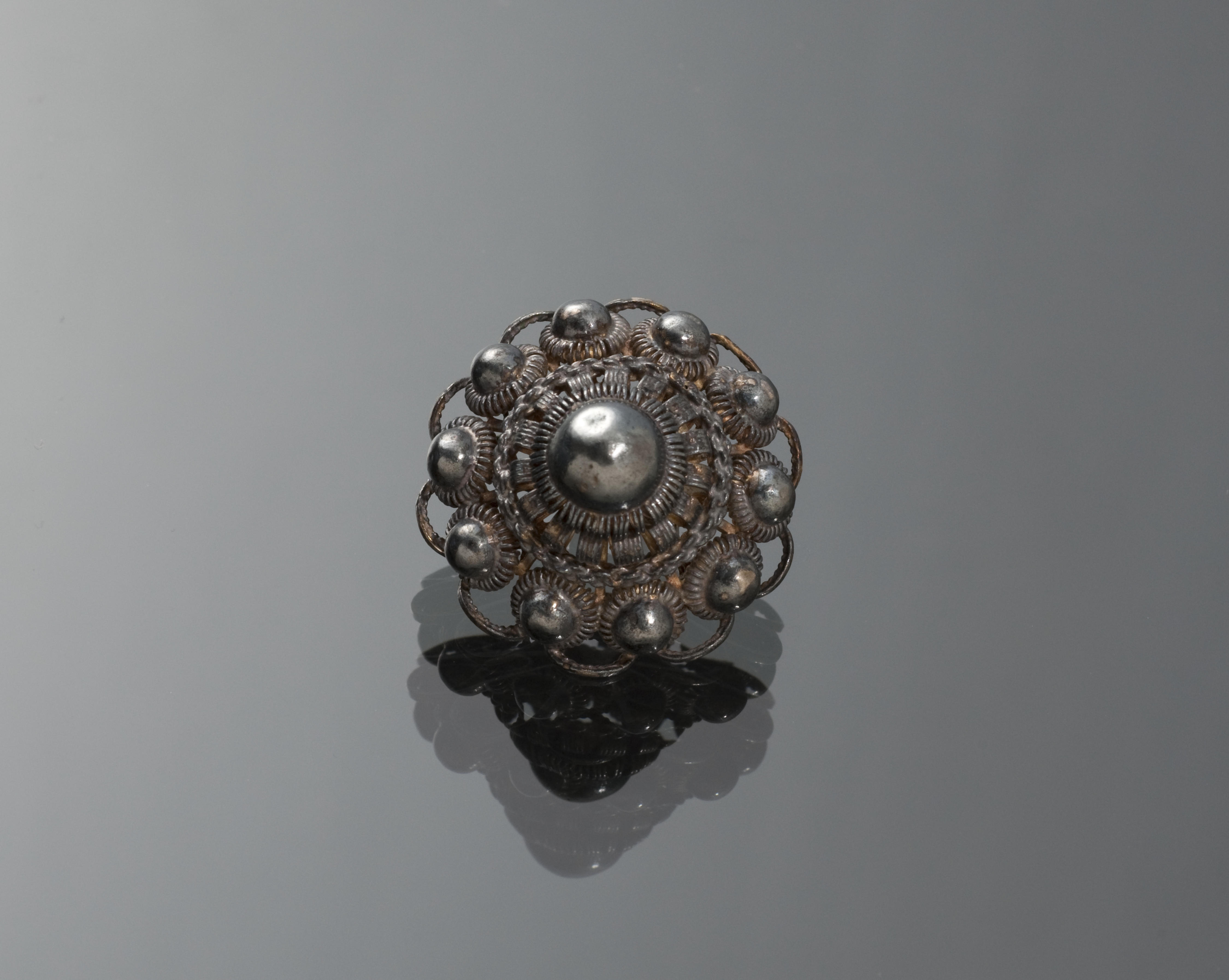 Set van zeventien tweede gehalte zilveren knopen, zogenaamde 'Zeeuwse knopen'. Dit model knoop is vanaf circa 1890 tot na de Tweede Wereldoorlog gemaakt en wordt nog steeds nieuw gemaakt in Zeeland. Deze set is afkomstig uit Staphorst of Rouveen. Door jongens en mannen worden sets van achttien knopen gedragen als sluiting van de hemdrok.