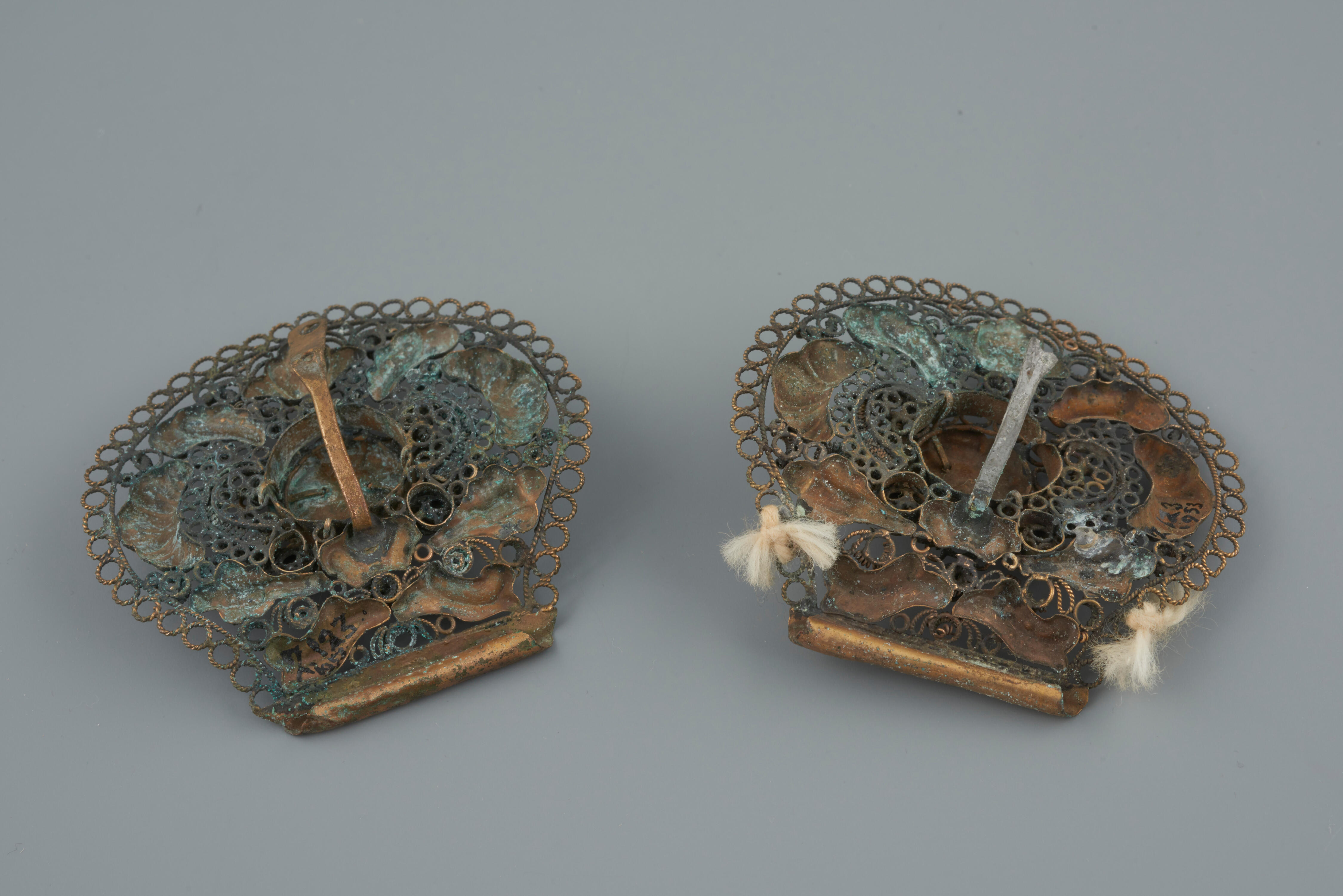Paar vergulde messing oorijzerstiften, provincie Groningen