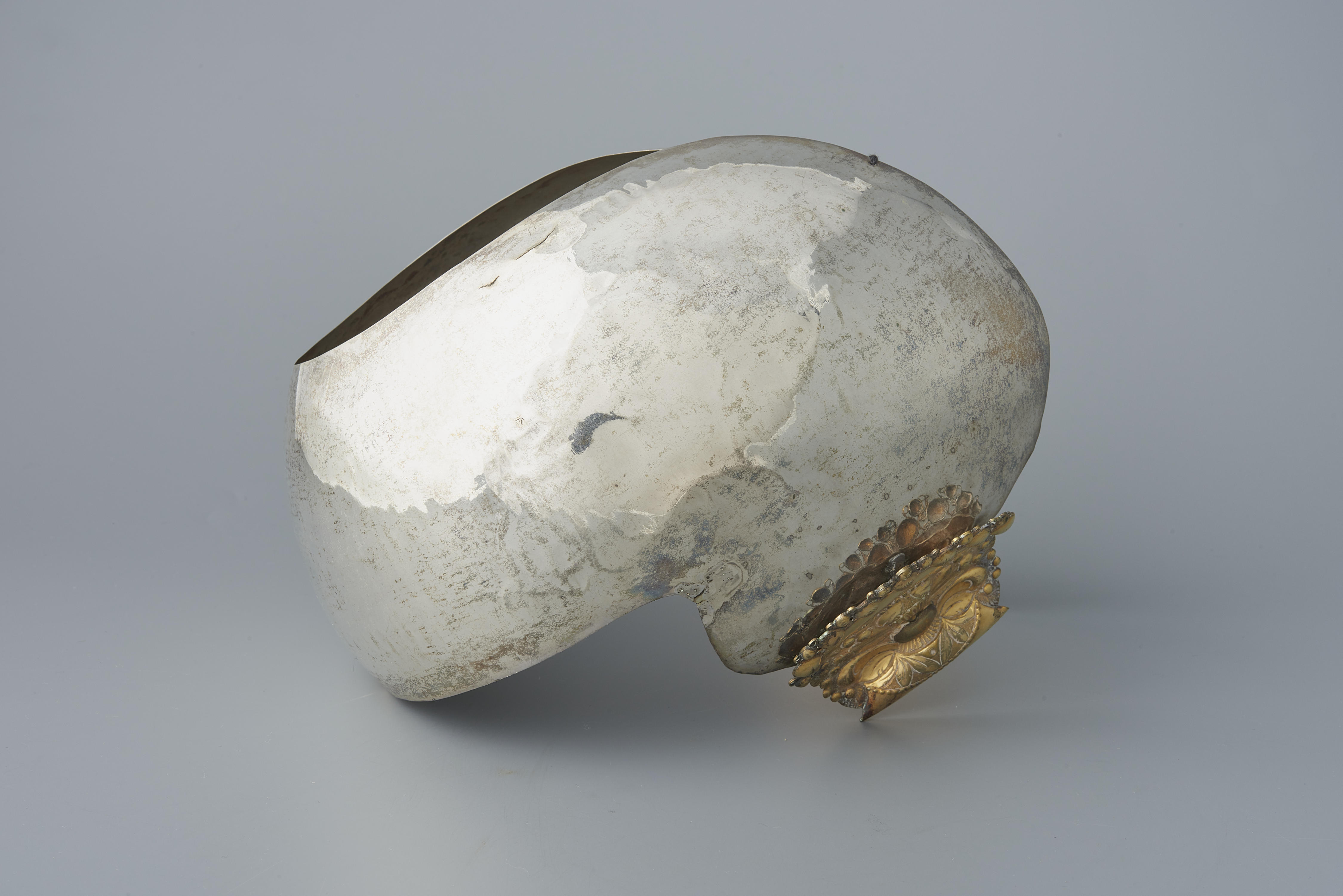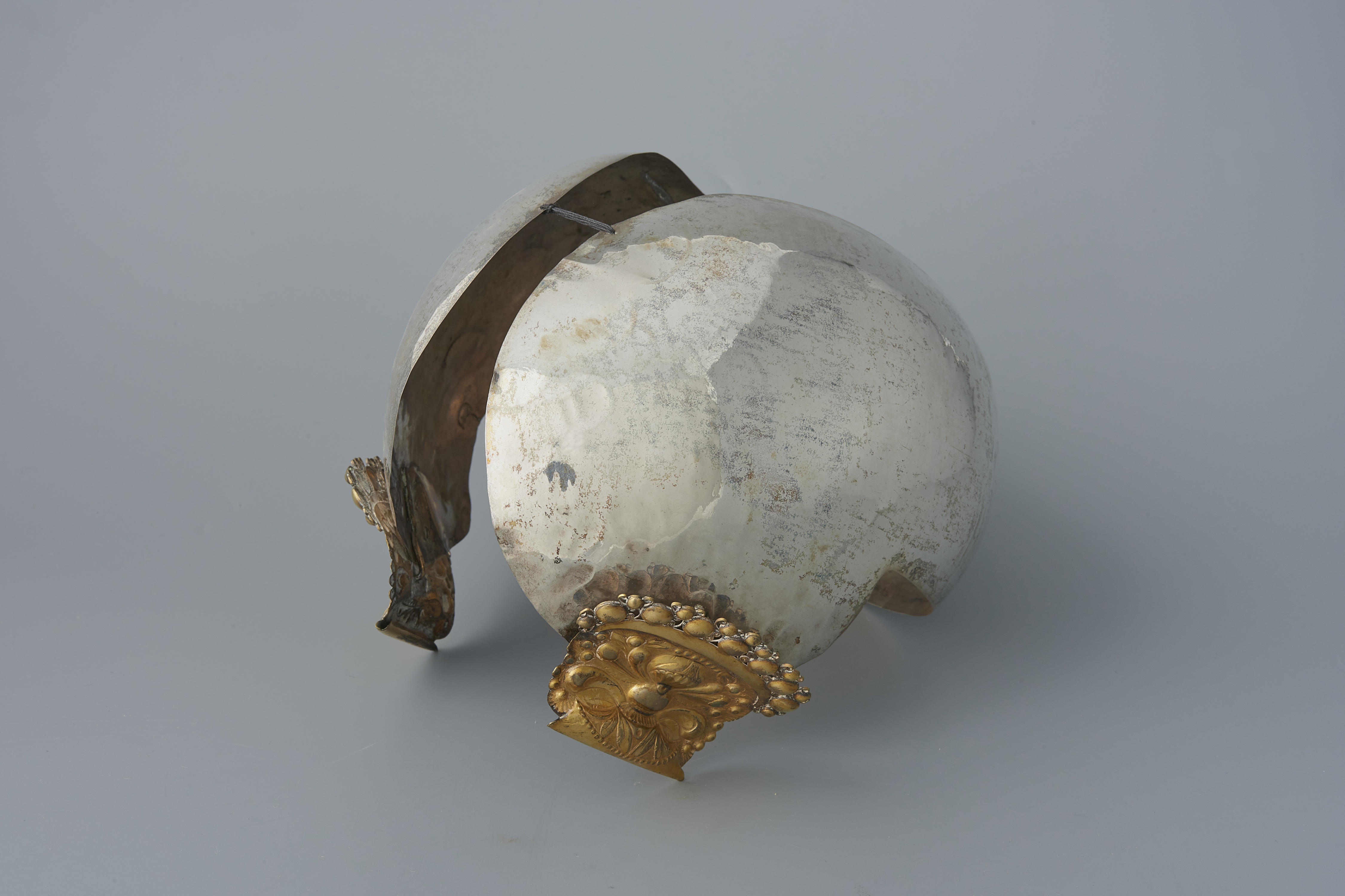 Zilveren oorijzer met vergulde stiften. Het oorijzer heeft het meesterteken van de gebroeders Deelman in Groningen voor de periode 1851-1863. Er staat ook een jaarletter in, maar deze is moeilijk te herkennen. Mogelijk gaat het om een ijzer uit 1858. Op de band van het ijzer zijn in stippelgravure de initialen van de draagster ‘J.K.’ ...