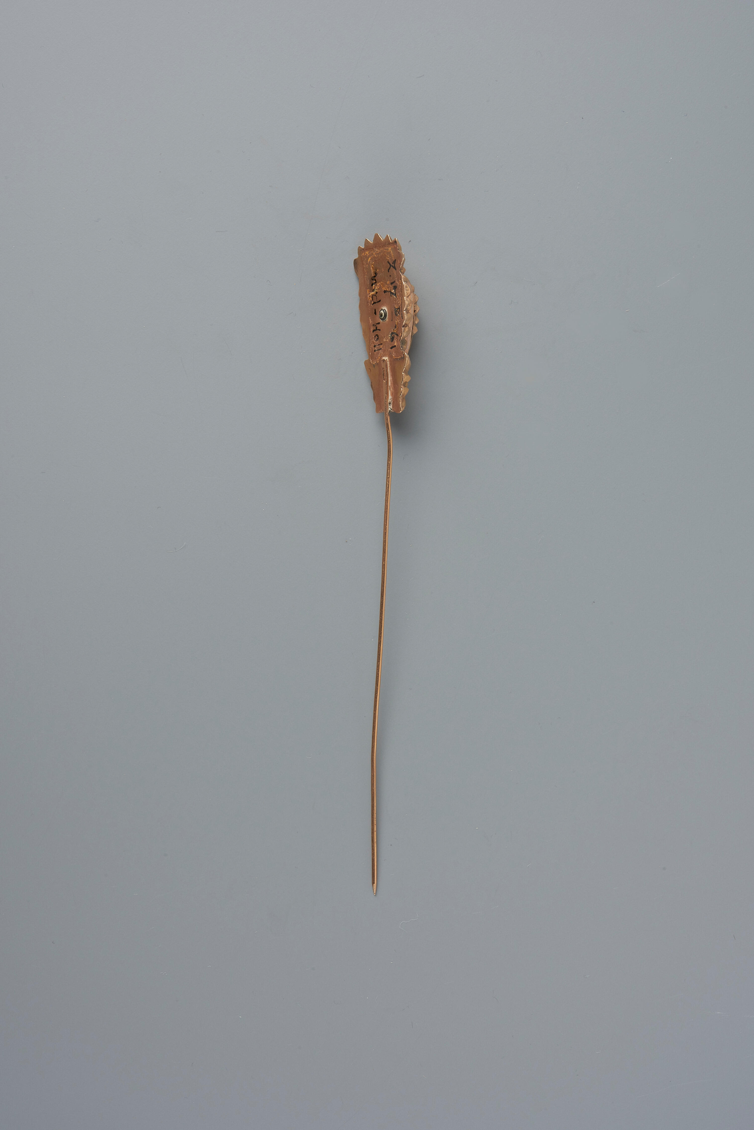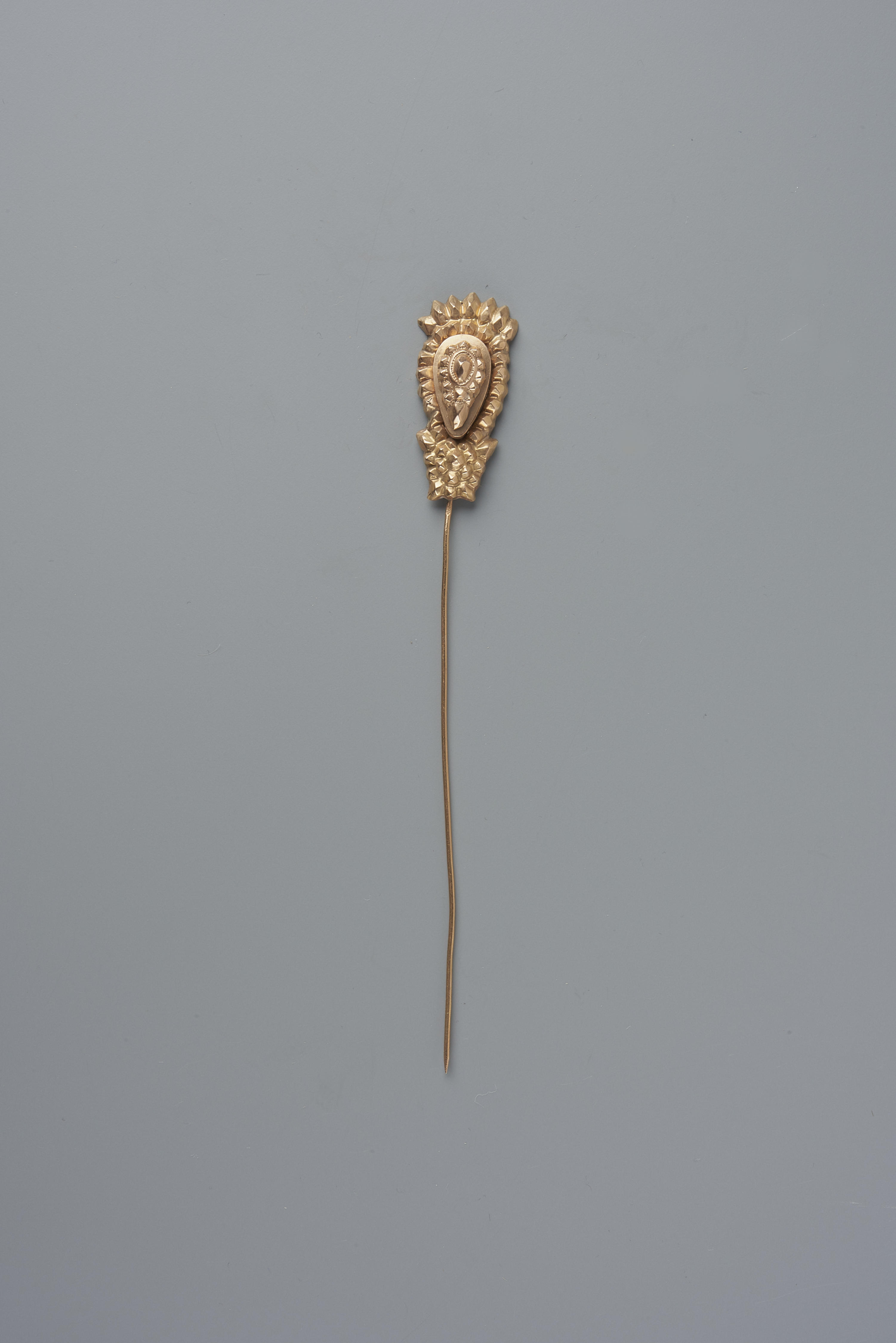 Een 14-karaats gouden kapspeld, gedragen door een vrouw in streekdracht uit Noord-Holland. De kapspeld is omstreeks 1880 vervaardigd door edelsmid D. Kriebel, werkzaam in Hoorn van 1869 tot 1902. De speld is verworven als onderdeel van een paar. In 1971 is de andere speld verloren geraakt op een tentoonstelling in Leek.