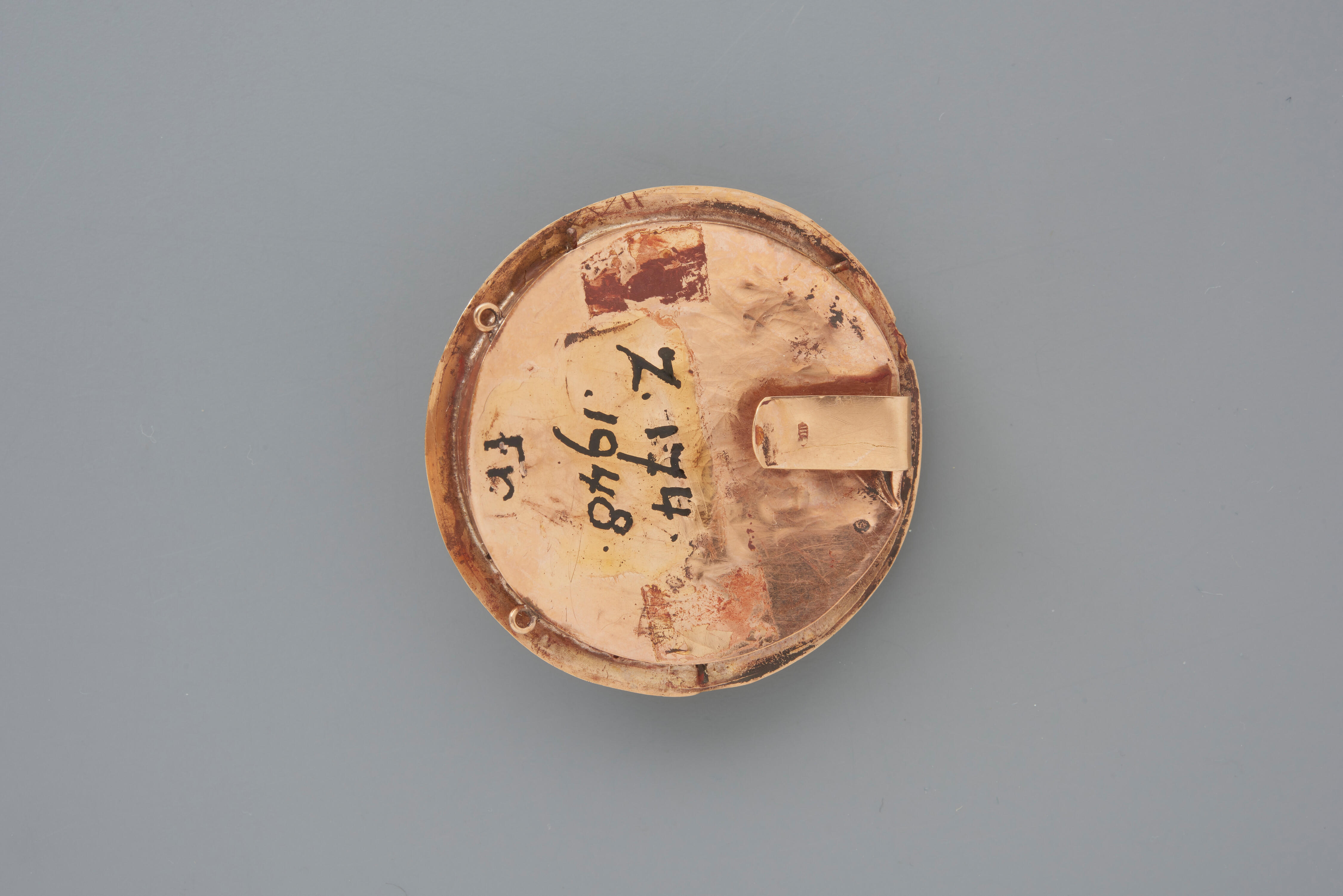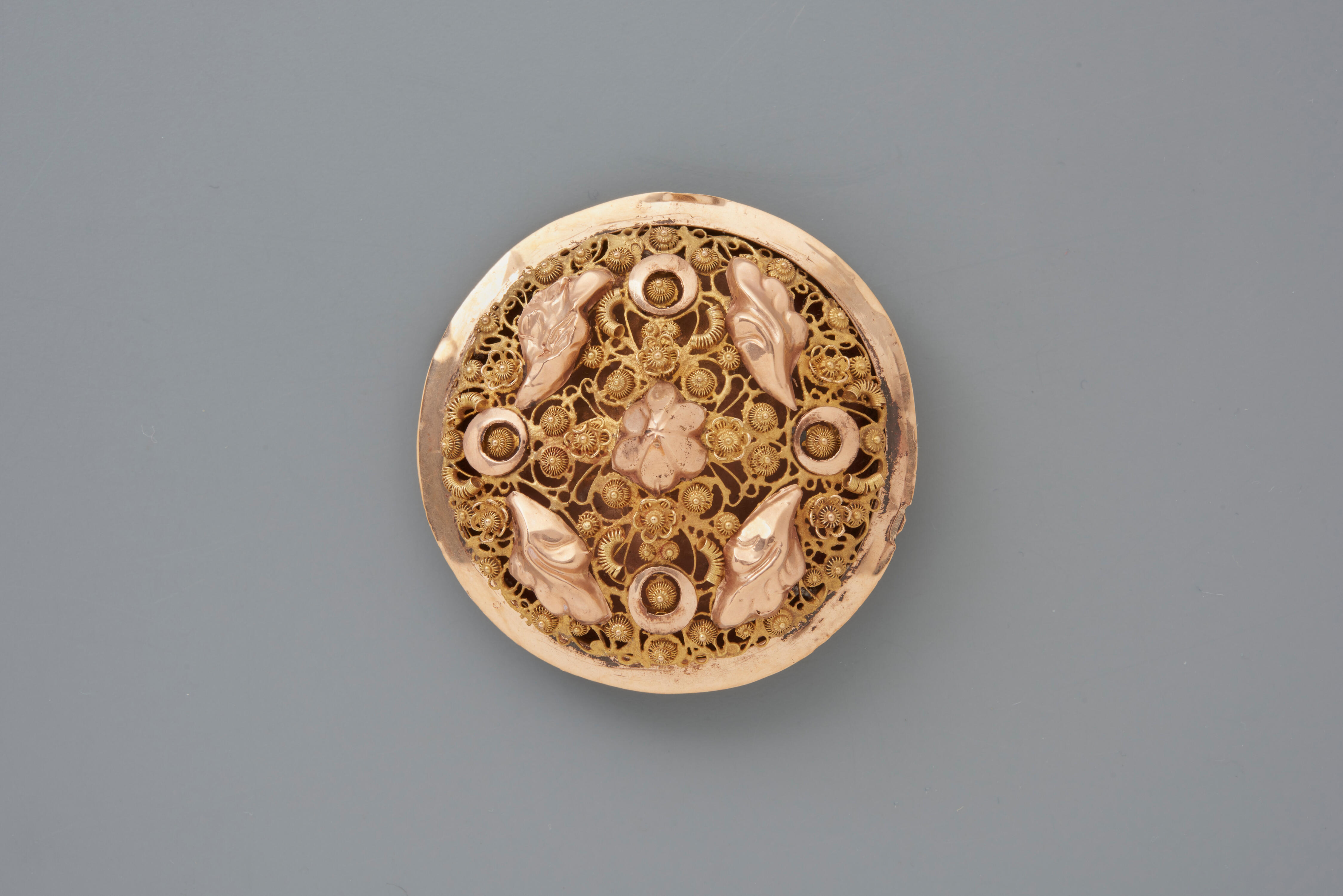 Het middenstuk van een driedelig gouden halssnoerslot van 14-karaats goud. De vervaardiger is onbekend, want de merken zijn onduidelijk.