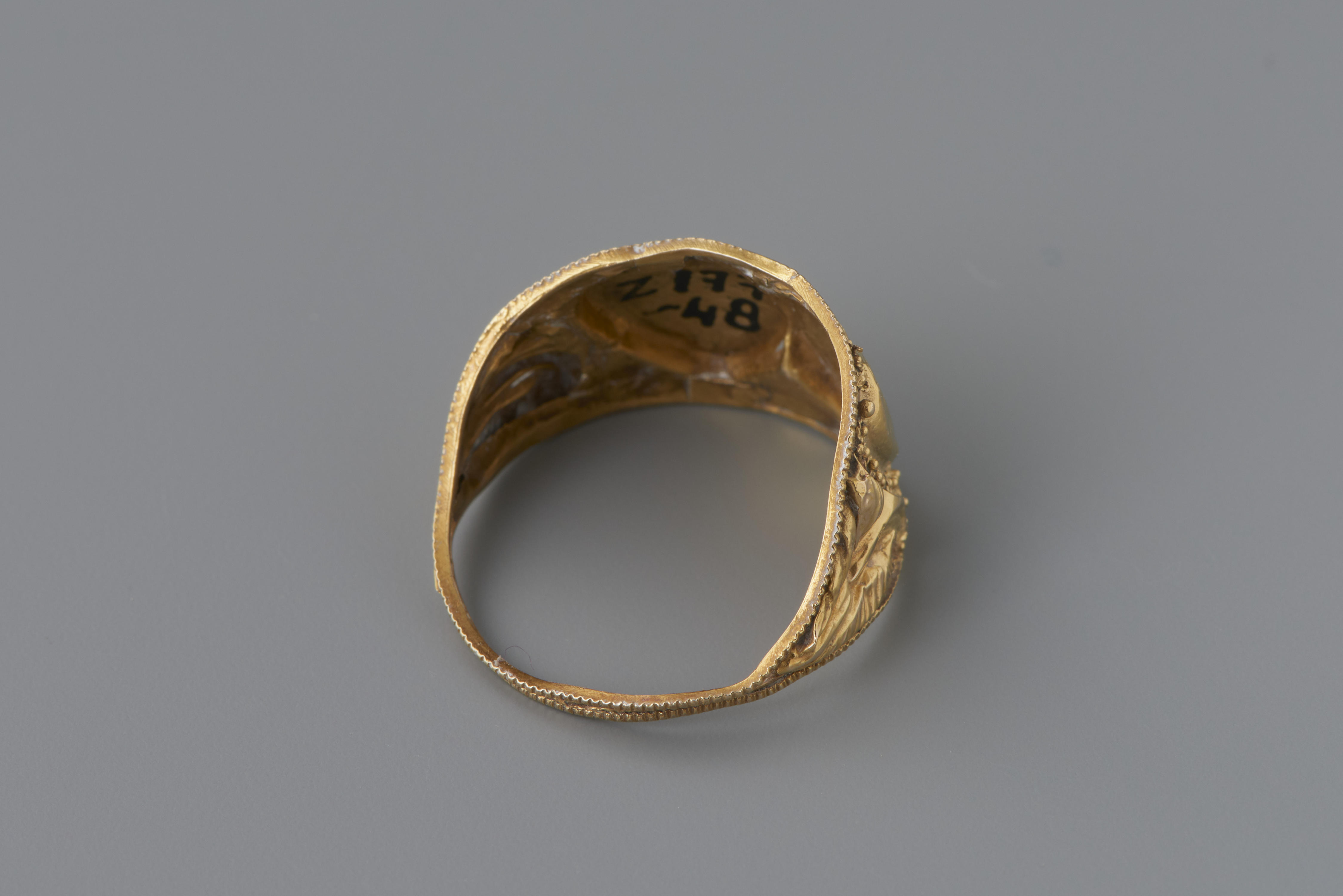 Gouden ring, gemaakt omstreeks 1865-1870 en gedragen door een vrouw uit Noord-Brabant. Dit type ring werd ook in andere provincies gedragen.