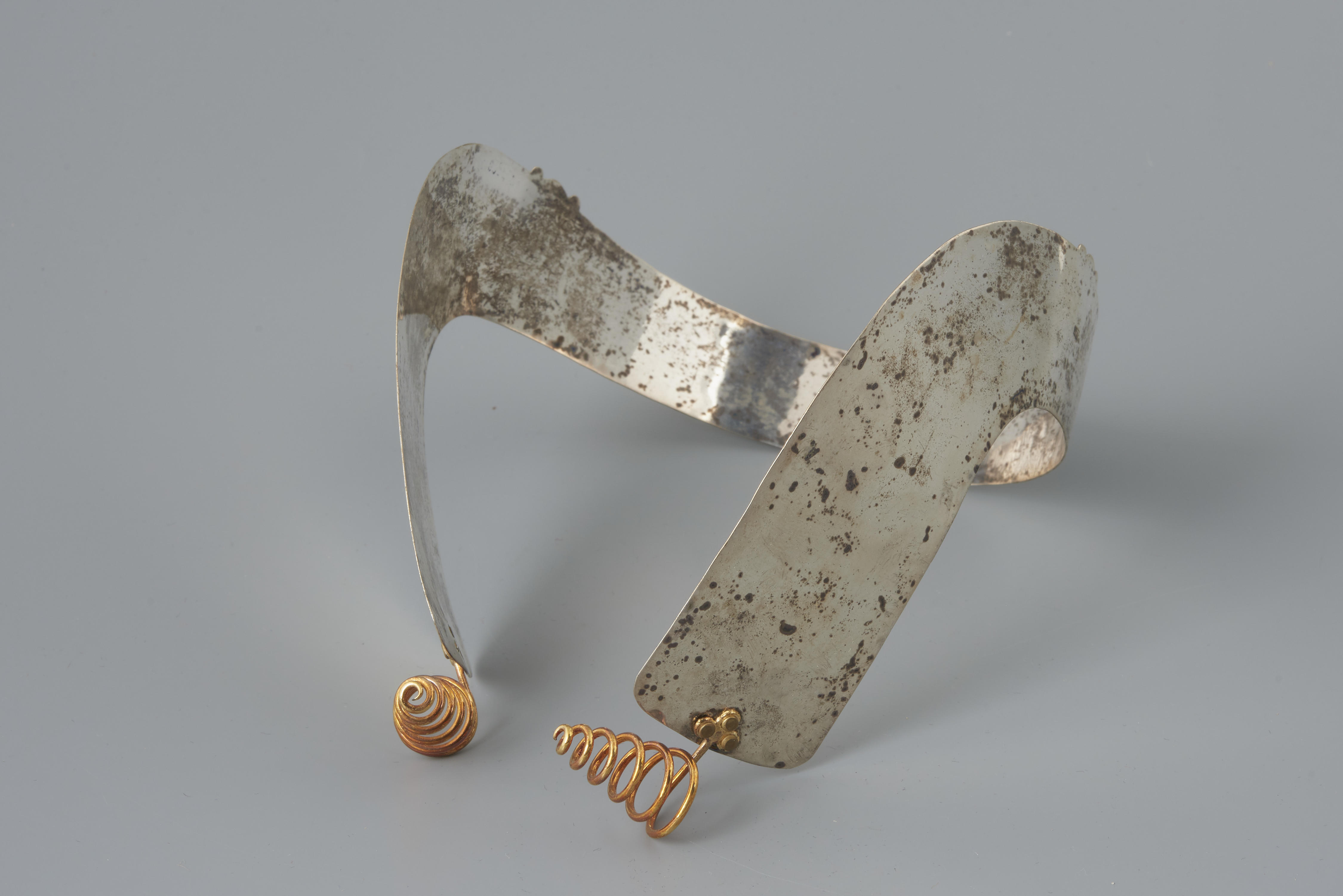 Zilveren oorijzer met gouden krullen, Noord-Veluwe, 1916