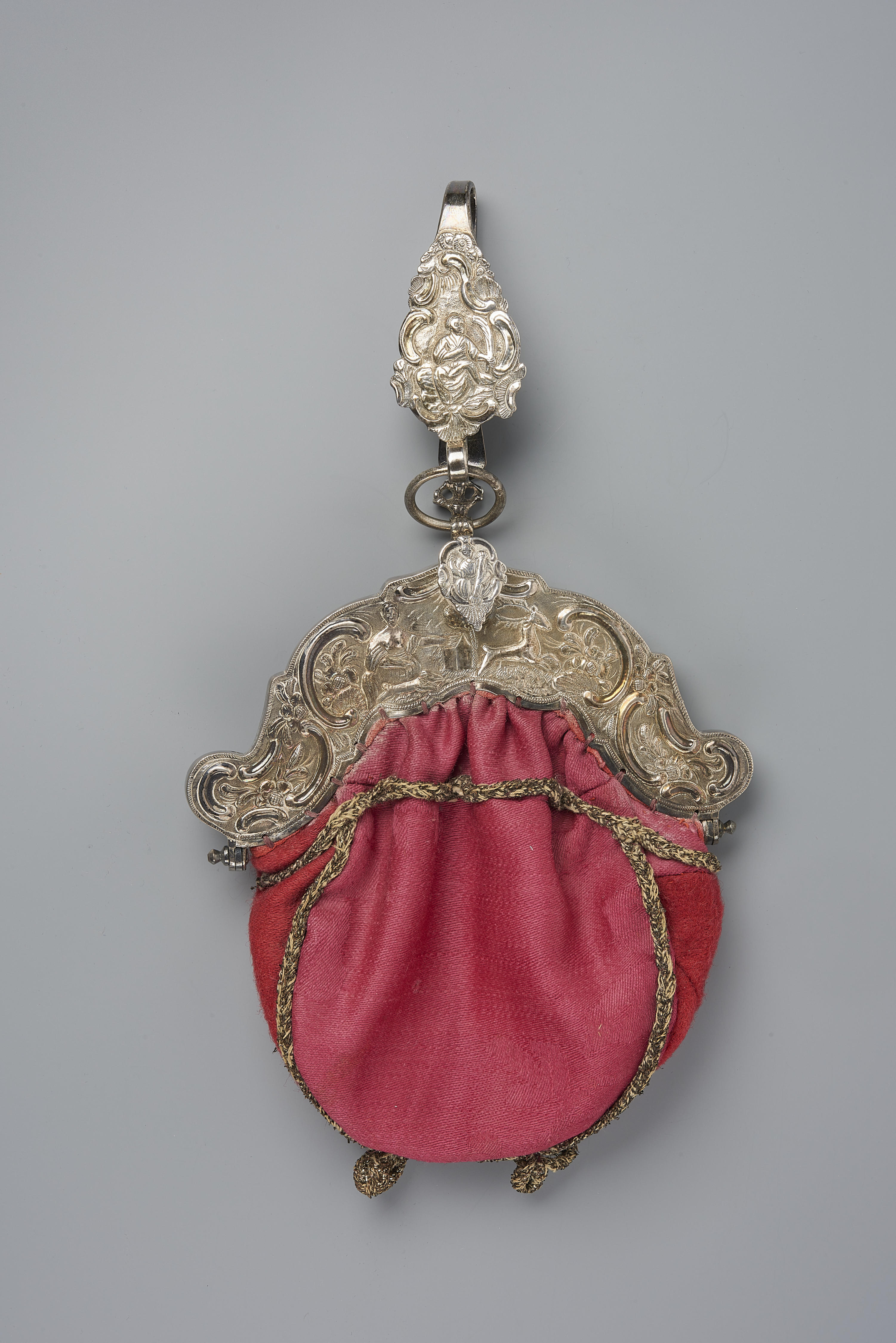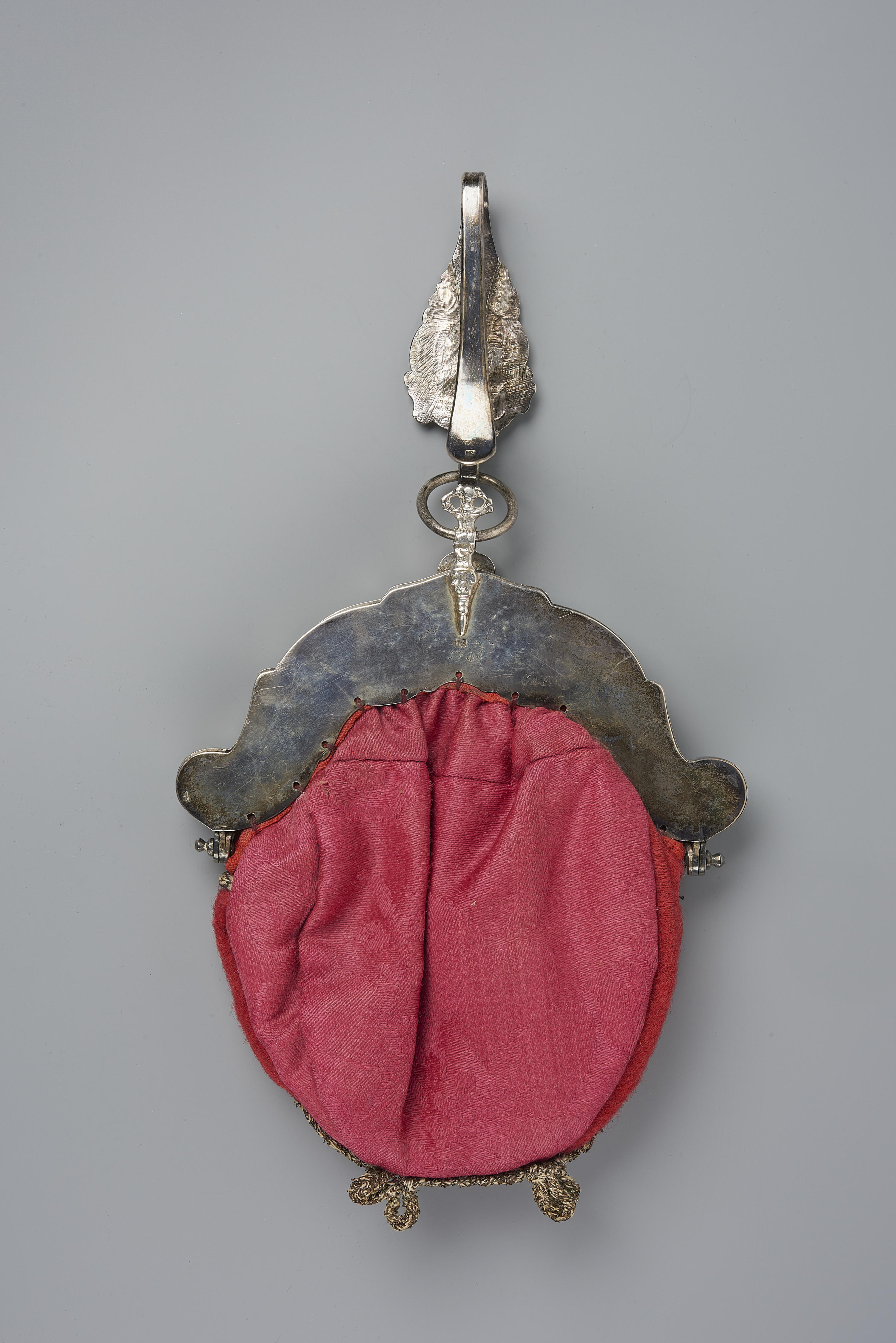 Beugeltas met een tasbeugel en haak van zilver en een tas van rode wollen damast. Het zilver van de beugeltas is ongewaarborgd. De beugel is vervaardigd door Jan Roozenburg in Schoonhoven. In de beugel zijn de letters ‘AA’ en het jaartal ‘1788’ gegraveerd. In het binnenbeugeltje zijn de naam ‘J.M. Wijman’ en het jaartal ‘1879’ ...
