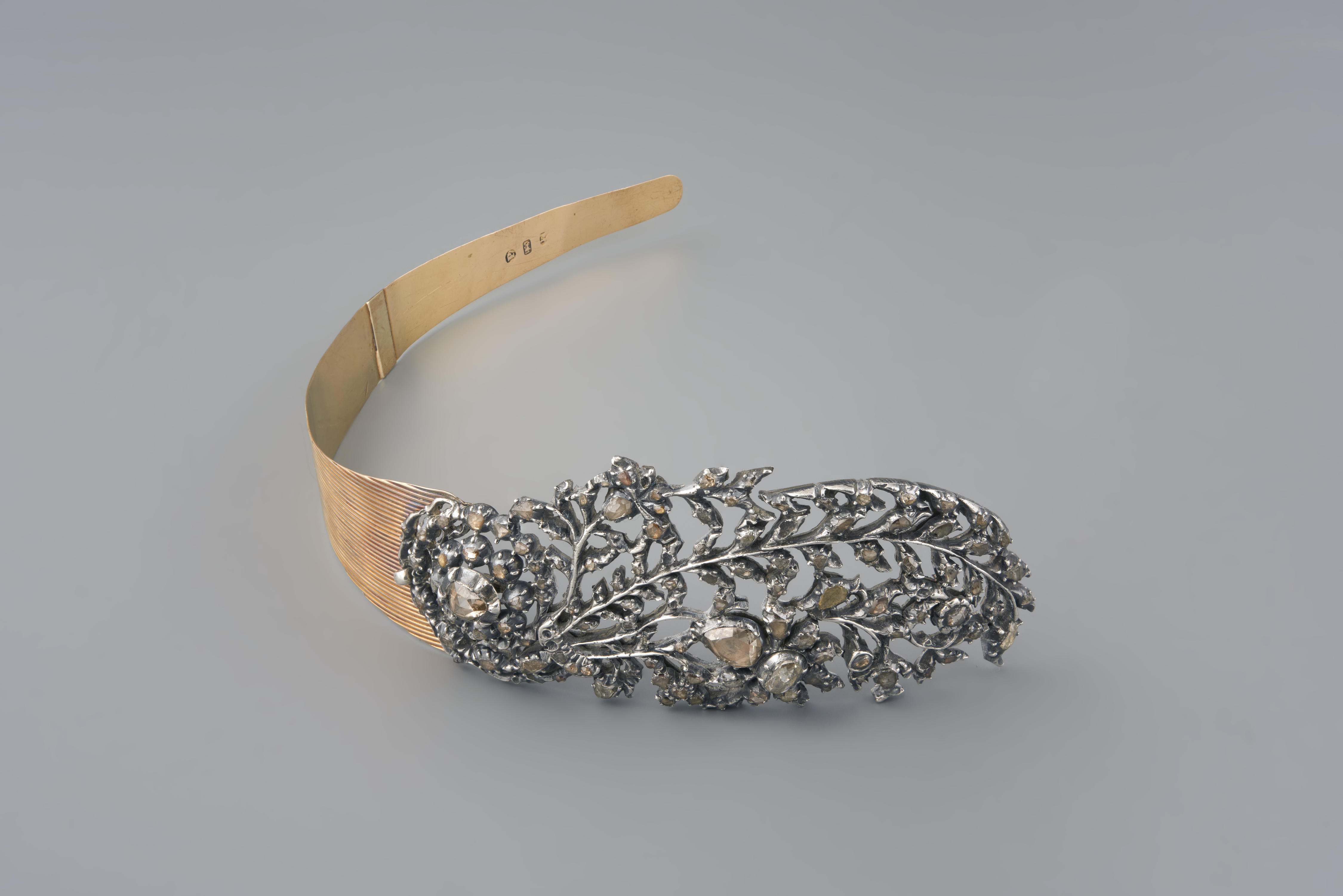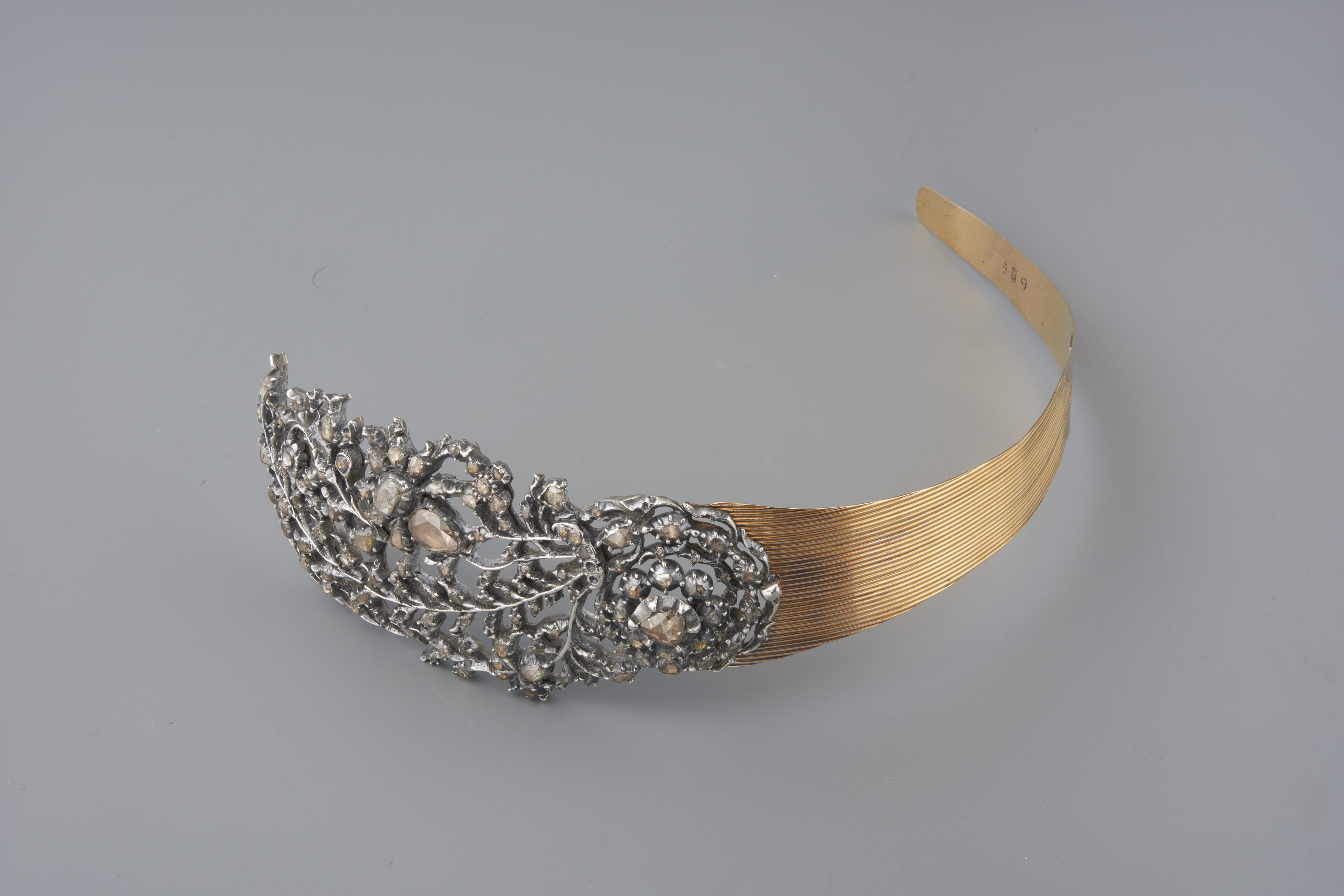 Voorhoofdsnaald van 18-karaats goud en zilver, ingelegd met diamant. Hij is gedragen door een vrouw uit de provincie Friesland. De voorhoofdsnaald is in 1847 door H. Freudenburg in Amsterdam gemaakt.