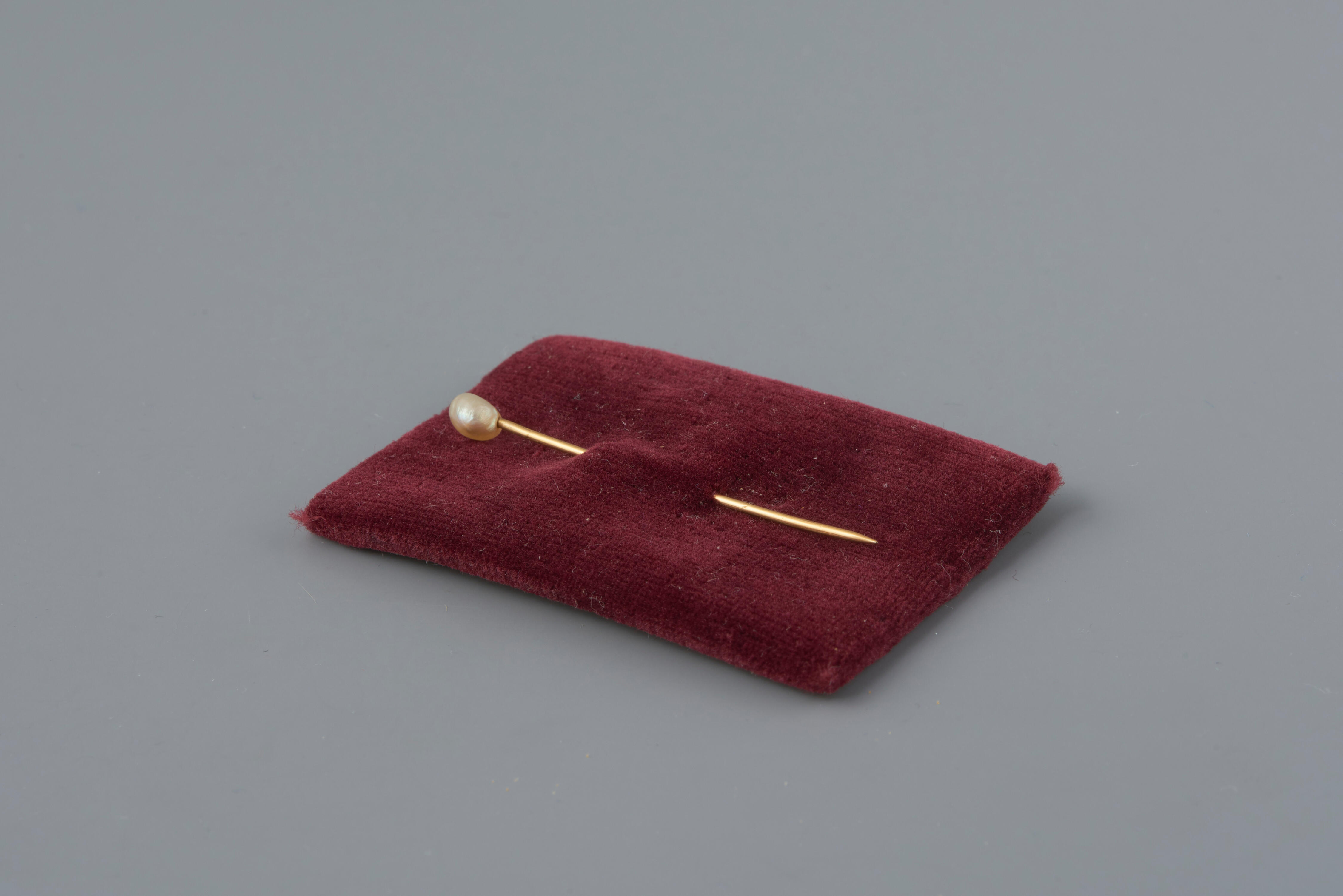 Een mutsspeld, bestaande uit een parel op een 18-karaats gouden steekspeld. De speld was onderdeel van een paar, maar de andere mutsspeld is in het museum zoekgeraakt. De spelden zijn gedragen door een vrouw in streekdracht van de Zuid-Hollandse Eilanden, in een zogenoemde keuvel of sluiermuts. De vervaardiger is onbekend.