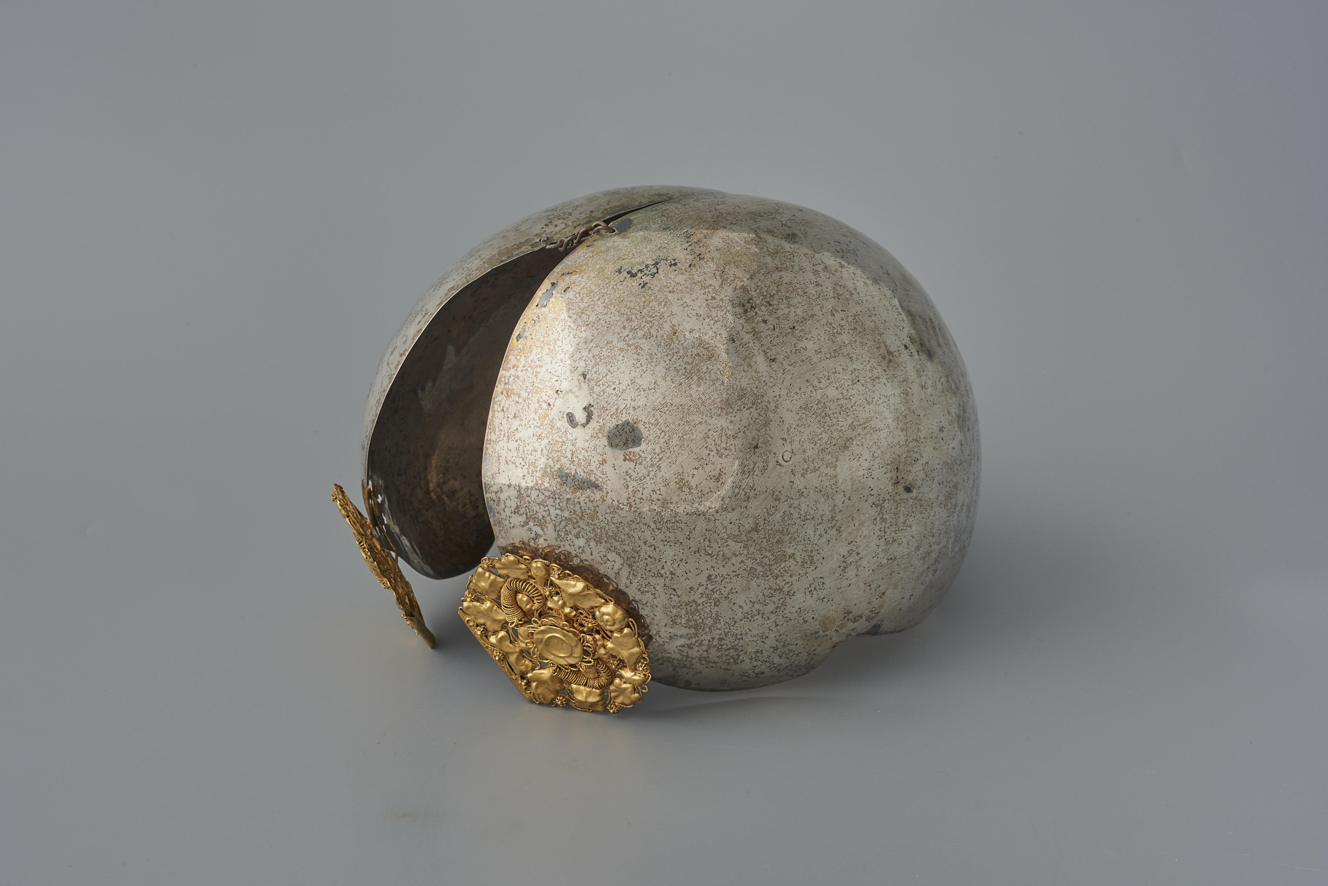 Zilveren oorijzer met vergulde stiften, Odoorn, 1877