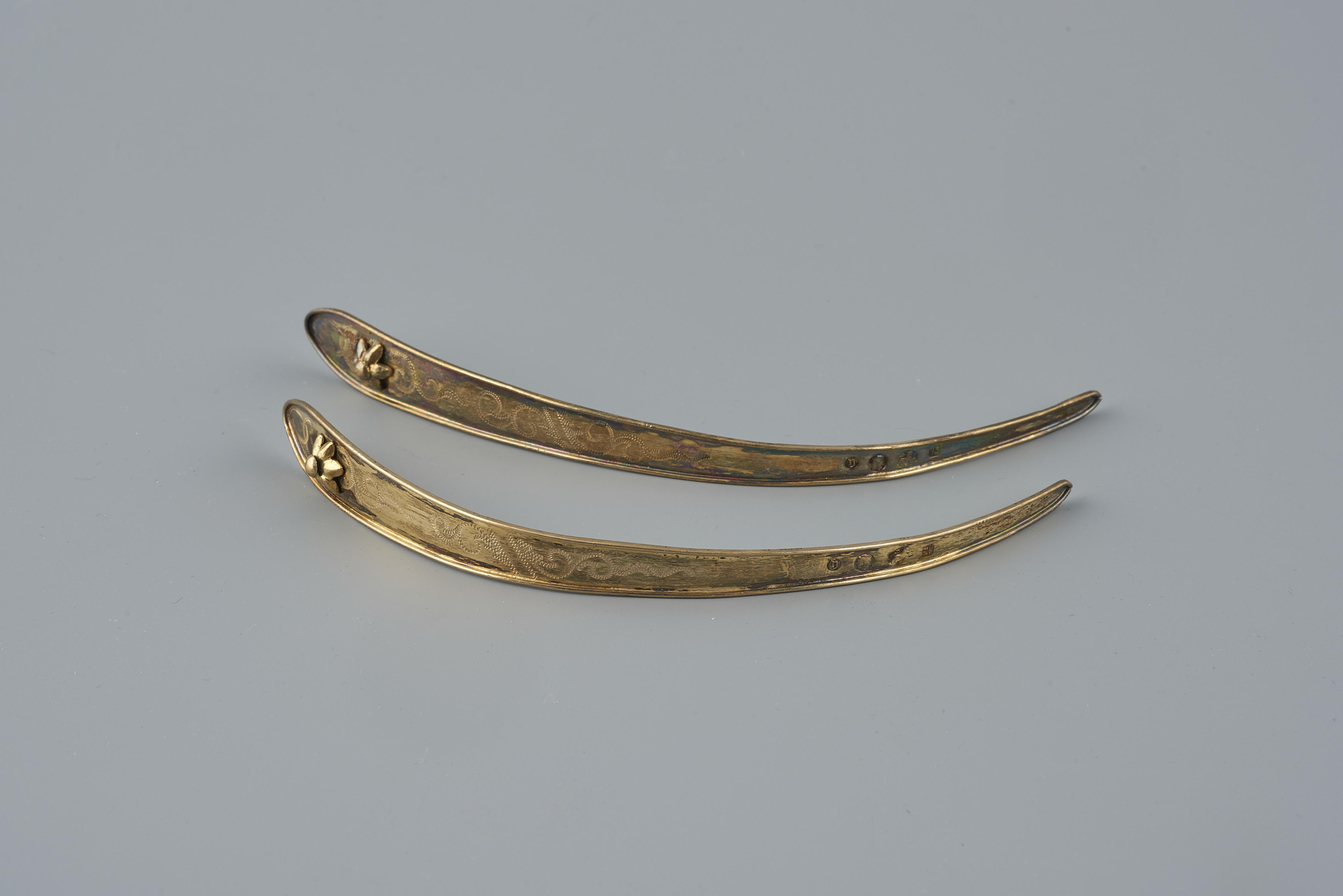 Paar vergulde zilveren zijnaalden, Noord-Scharwoude, 1873