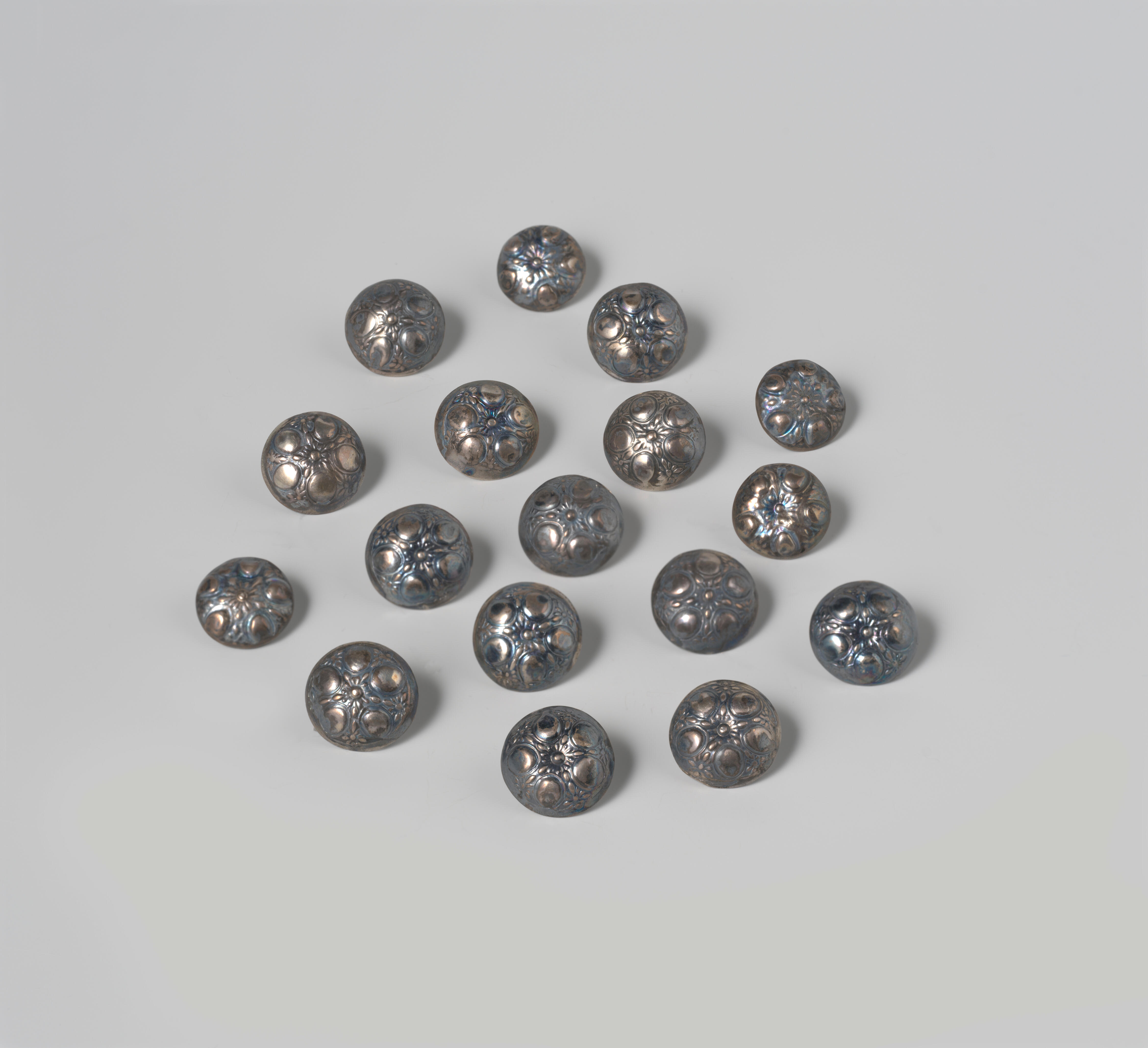 Zeventien bolle zilveren knopen met een bloemvorm, afkomstig van Walcheren. Dergelijke knopen werden door jongens en mannen gedragen als sluiting van de hemdrok. De knopen zijn vervaardigd door C. Wendels, tussen 1828 en 1849 werkzaam in Middelburg. De knopen zijn verschillend van formaat.