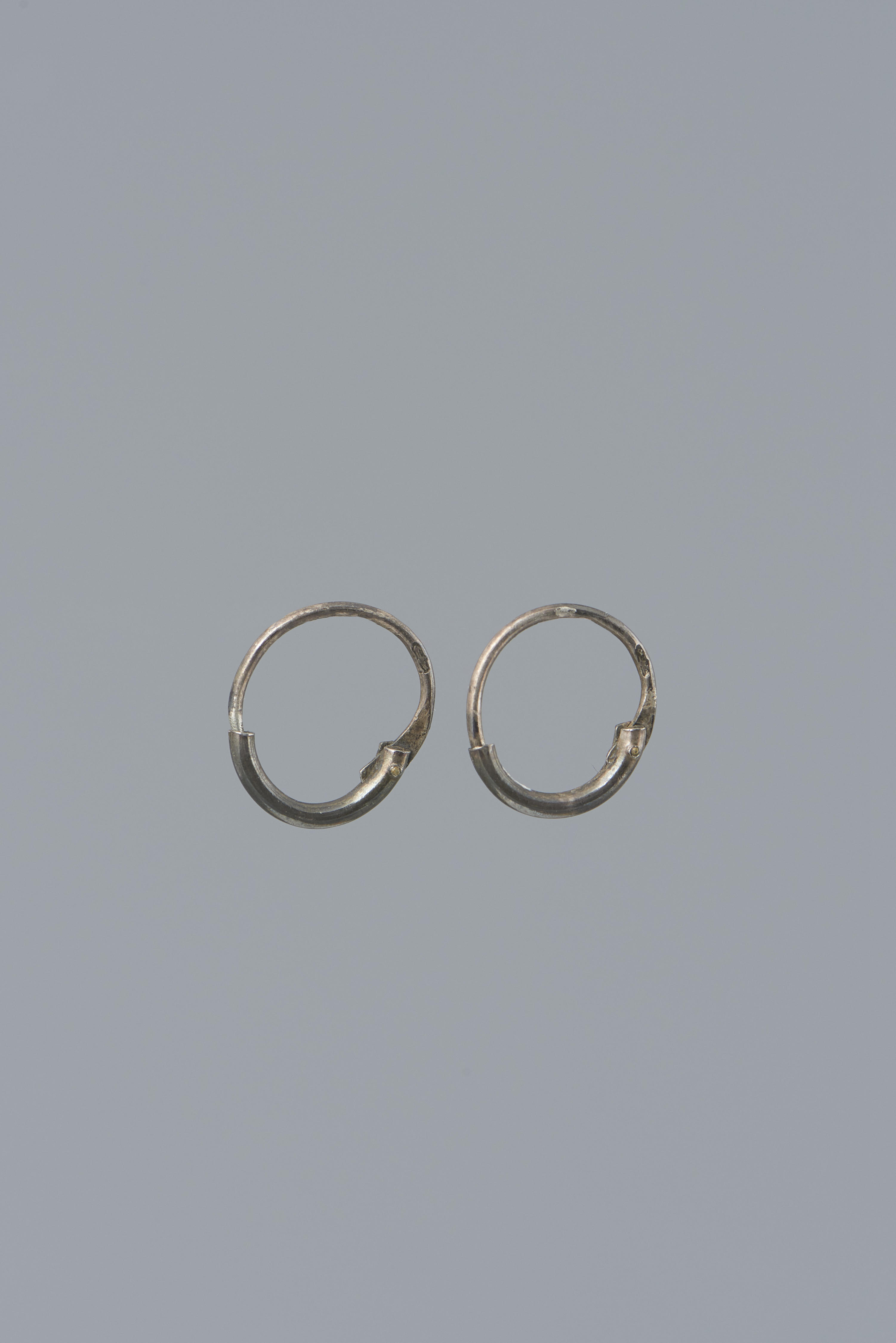 Paar zilveren oorringen, gedragen in Friesland. Dergelijke eenvoudige oorringen werden ook door mannen gedragen. Verwervingsgegevens lijken er echter op te wijzen dat deze ringen door een vrouw zijn gedragen bij haar zilveren rouwsnoer. De vervaardiger is onbekend (geen meesterteken). De oorringen hebben een gehaltemerk dat gebruikt is tussen 1814 en 1906.