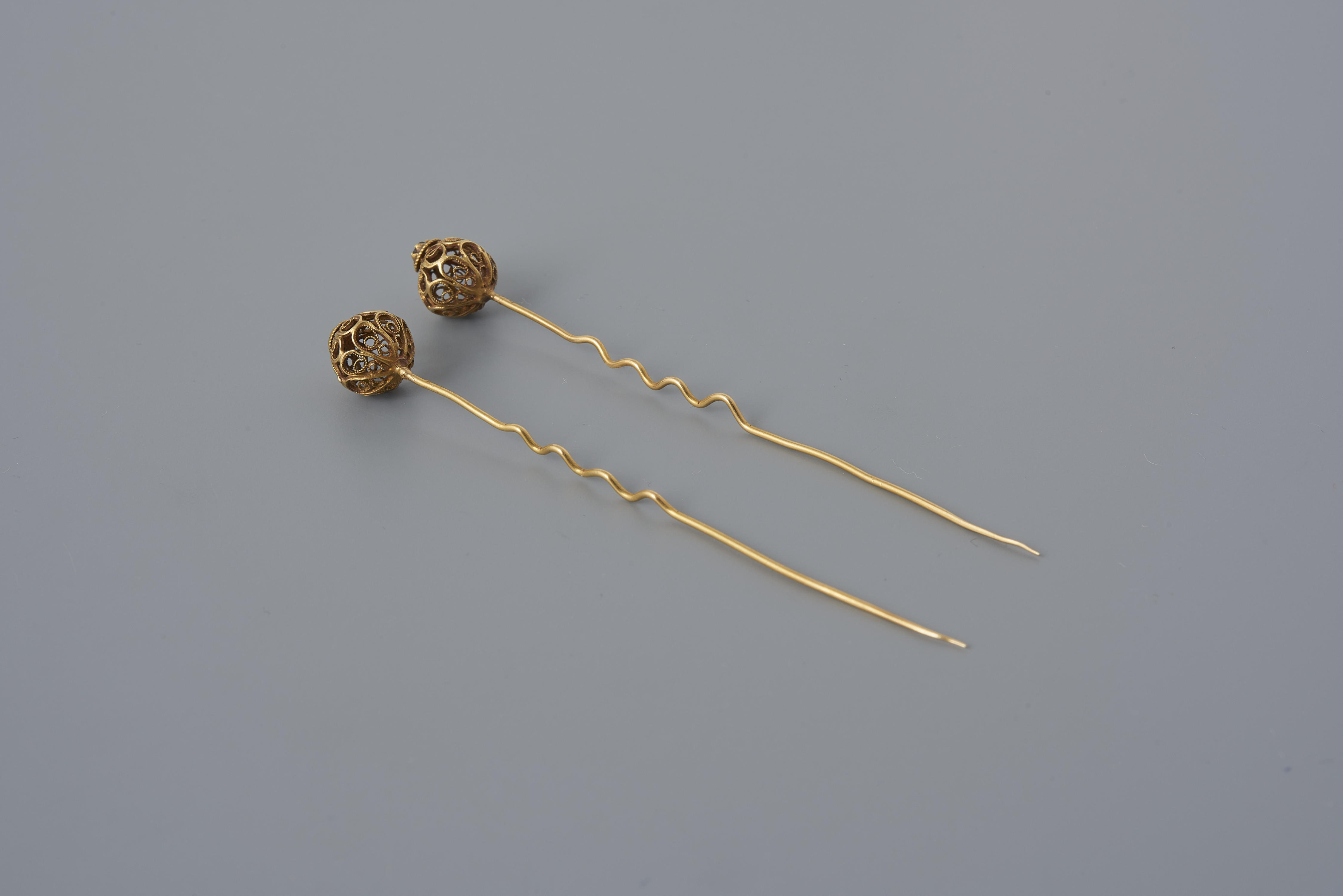 Paar gouden mutsspelden, afkomstig uit Friesland. De spelden zijn waarschijnlijk vervaardigd in het begin van de negentiende eeuw. De vervaardiger is onbekend.