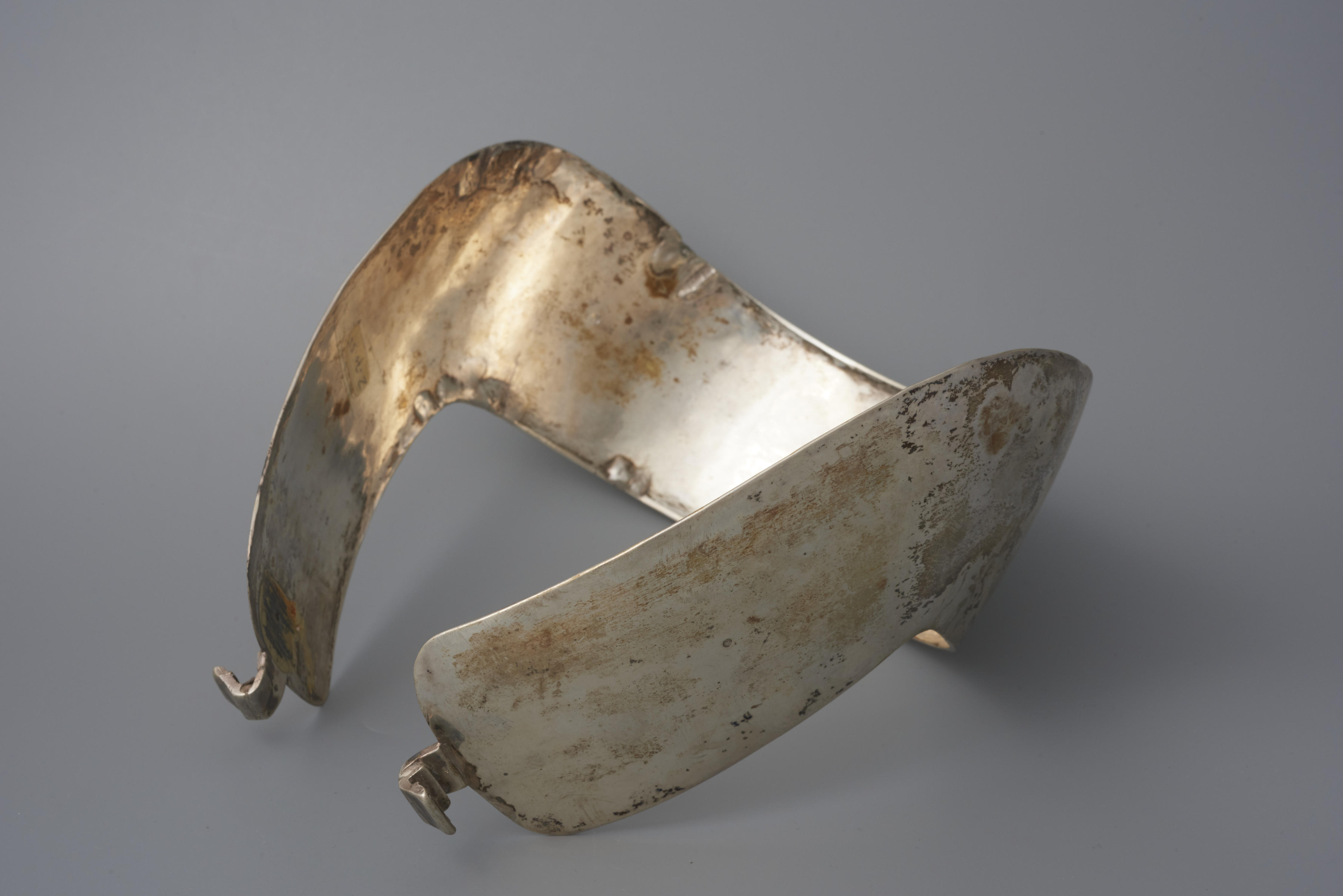 Staphorster oorijzer met zilveren oorijzeruiteinden of 'nabben', voor een meisje in de leeftijd van ongeveer 7 tot 12 jaar. In haar twaalfde levensjaar werden de zilveren nabben vervangen door spiraalvormige gouden krullen. Het oorijzer is in 1920 gemaakt door de Staphorster zilversmid Evert Drost. Dergelijke oorijzers werden op maat gemaakt. Voor wie dit ijzer werd ...