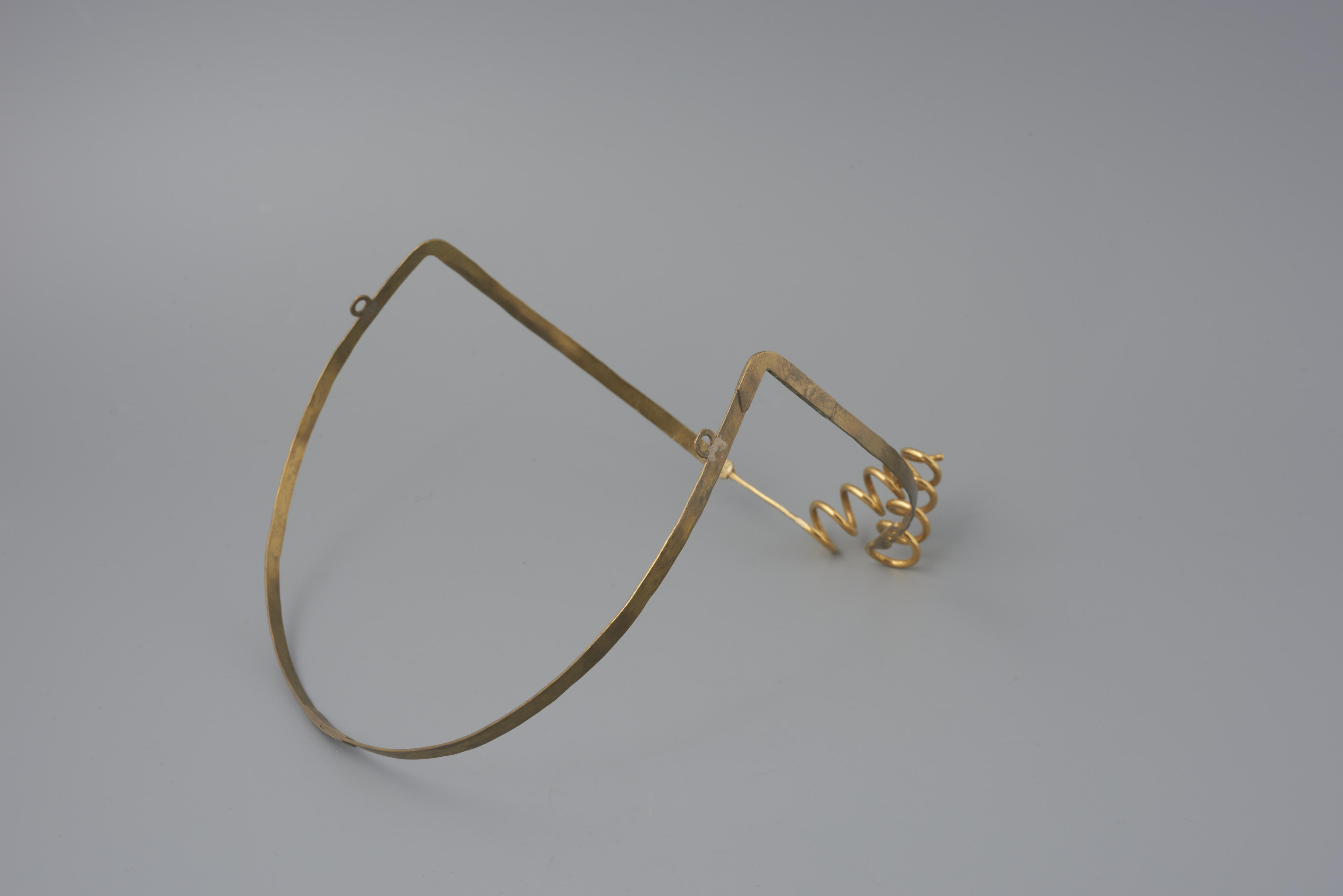 Messing oorijzer met vergulde krullen, Walcheren, voor 1950
