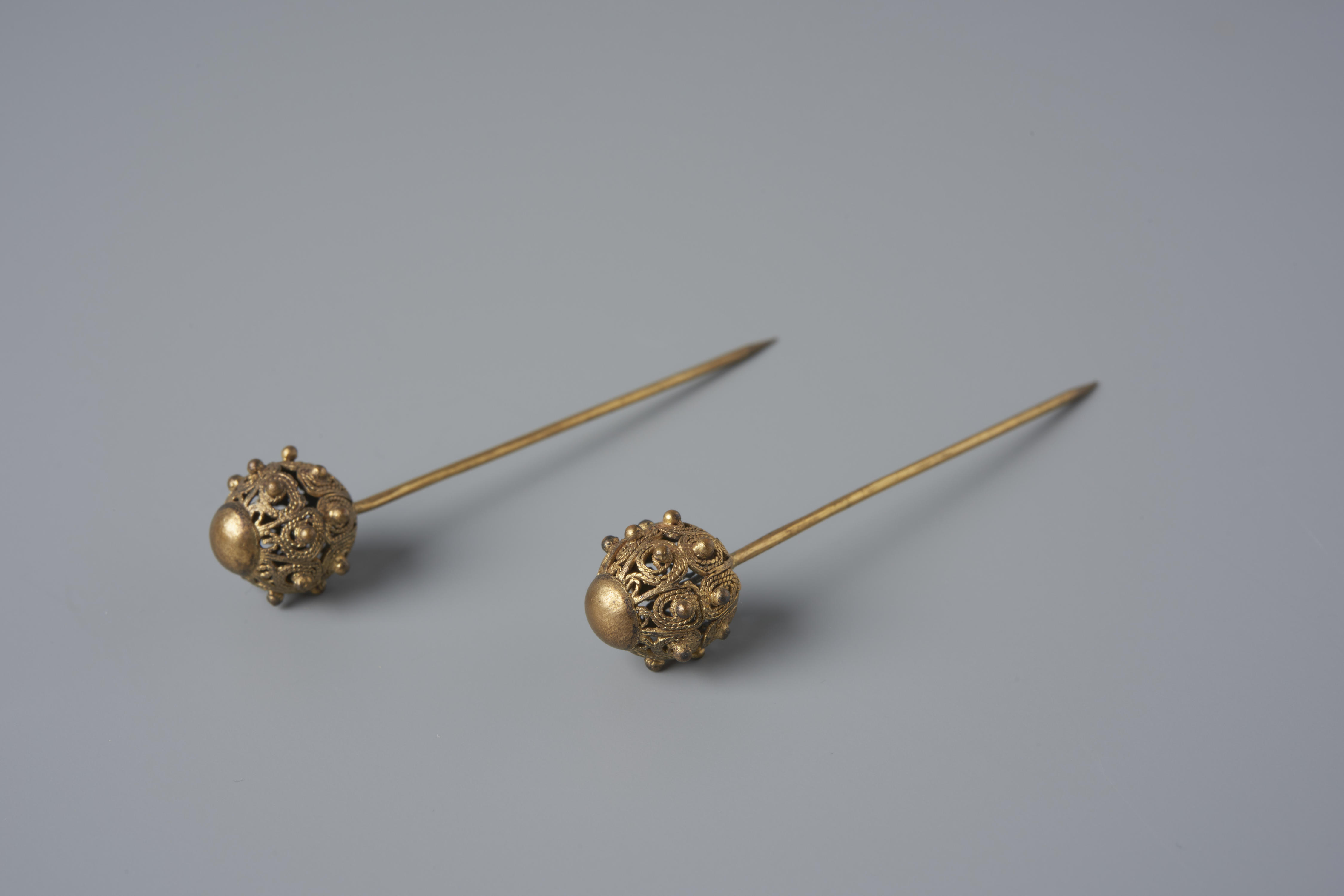 Paar messing mutsspelden, gedragen door een vrouw op Walcheren. Dergelijke mutsspelden werden voornamelijk gedragen door protestantse vrouwen op Zuid-Beveland en werden daar 'kroonspelden' genoemd. Vergelijkbare spelden zijn ook op Walcheren gedragen, waar ze 'bijenkorfspelden' genoemd werden.