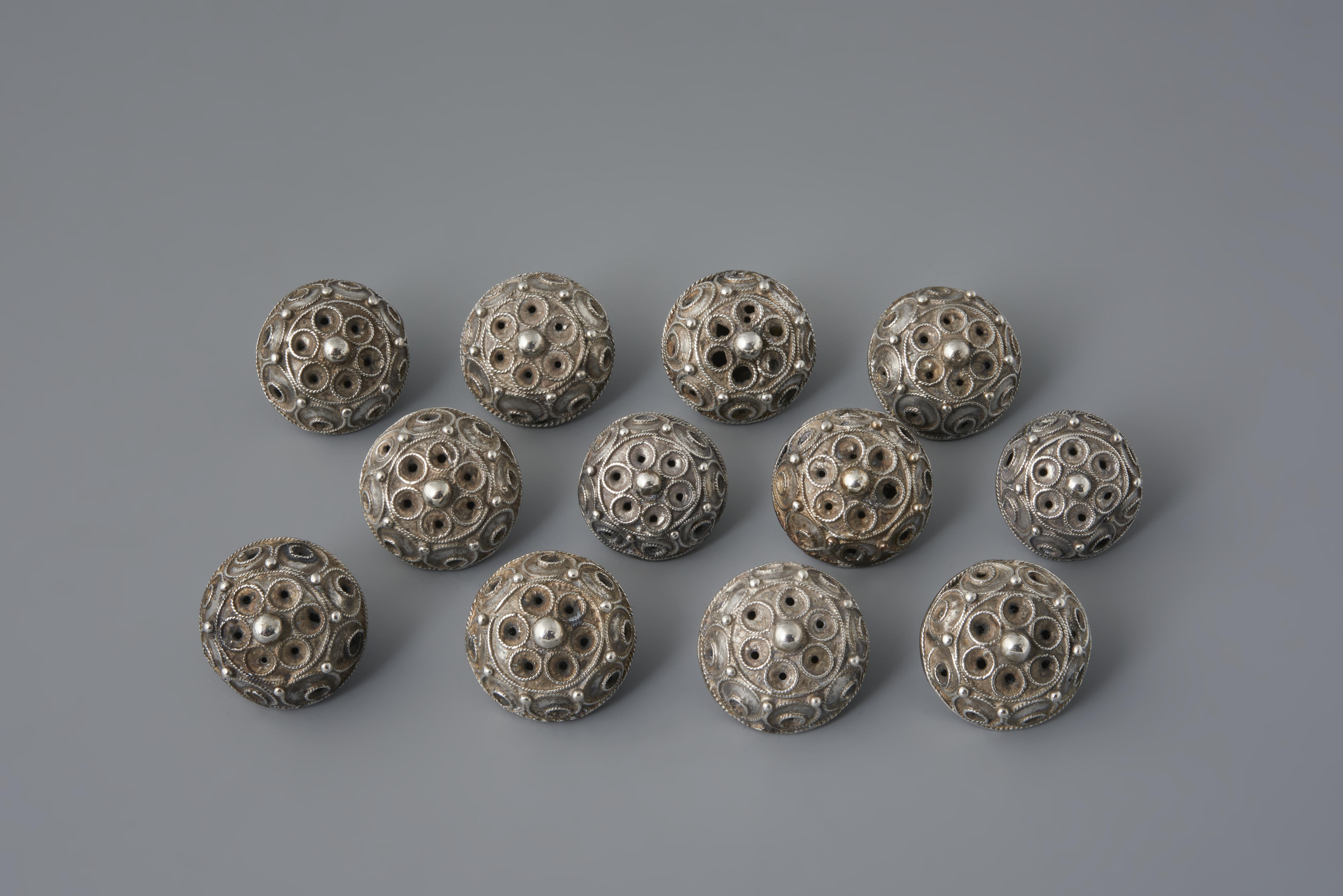 Knopen van het zogenoemde Schokker model zijn aan de bovenkant afgeplat. Ze zijn versierd met cirkels van draadwerk, waarbinnen een gaatje het centrum vormt. Ze hebben een gladde onderkant waarop een oog is geklonken. Deze twaalf knopen zijn als set in het museum gekomen. Er komen echter verschillende ongeïdentificeerde achttiende-eeuwse meestertekens op voor.