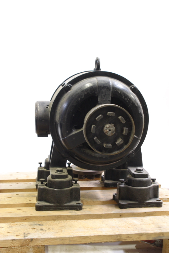 AEG draaistroommotor 220/380V-7.9/4.53A-3kVA-1500rpm, van zwart metaal en staand op vier poten. Fabr.serienr: 3850390. Behoort bij gelijkstroomdynamo reg.nr. 10399.